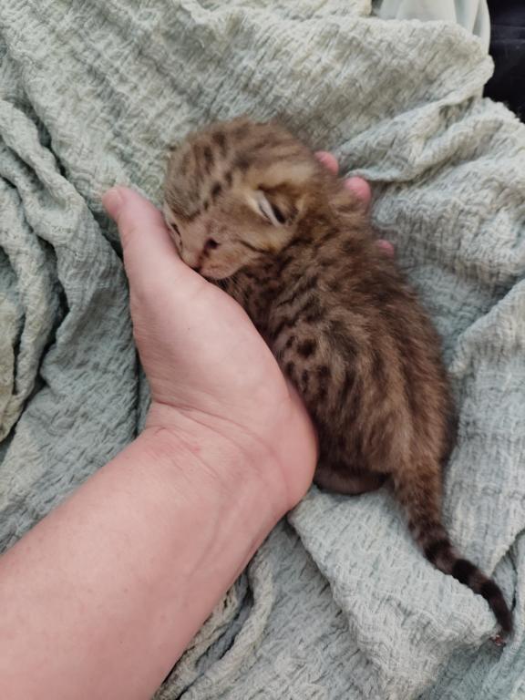 Marking description and details: Golden Rosette Bengals have the appearance of a small cheetah with a beautiful golden and tan tones to their undercoat with Black and Dark Brown rings called rosettes. these look like cheetah spots. they have very angular faces with black stripes and Bold Eye liner. Snow Bengals are a rarer and equally wonderful version of Bengals. They have a white undercoat with striking black spots and develop similar markings to the rosette in deep black that pops and gives them a striking look onces they reach maturity. The kittens are born pure white and take about a month to start displaying the outlines of their markings. Stripe and spot outlines are becoming visible by the time the kittens go home and continue to develop as the kitten reaches maturity. Legs, Tail, Ears, Face, and stomach have the most apparent markings early on. they become more and more crisp and striking each month. final look for all of the versions is reached around 18 months. The males are a bit larger than an average cat and love to walk on leashes and show off in public! They are EXTREMELY affectionate and want to be held and snuggled 24/7!