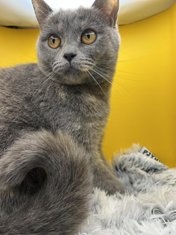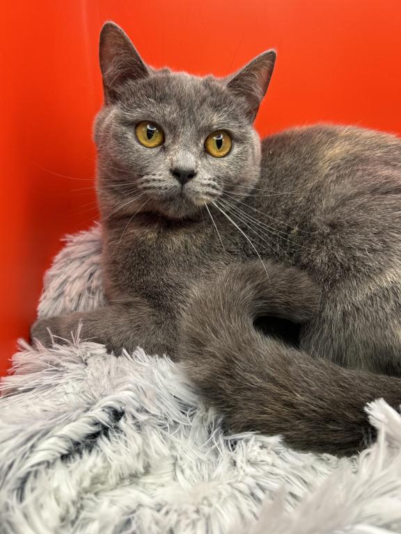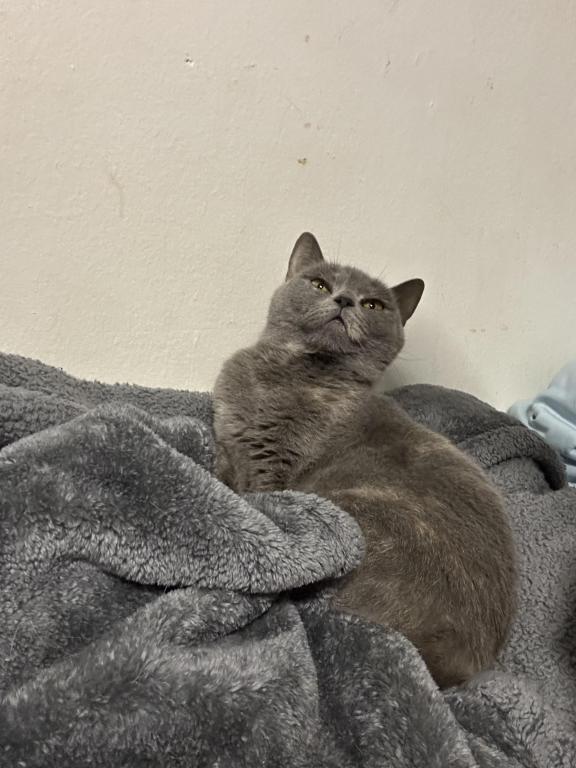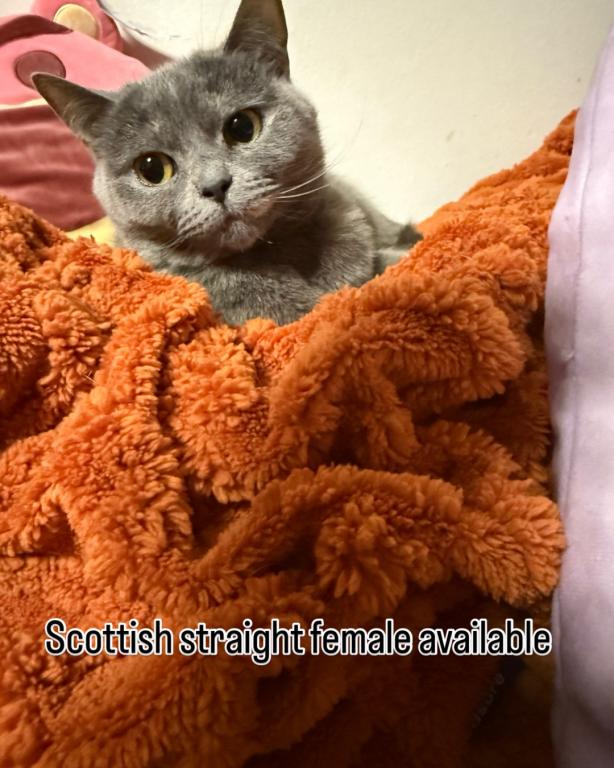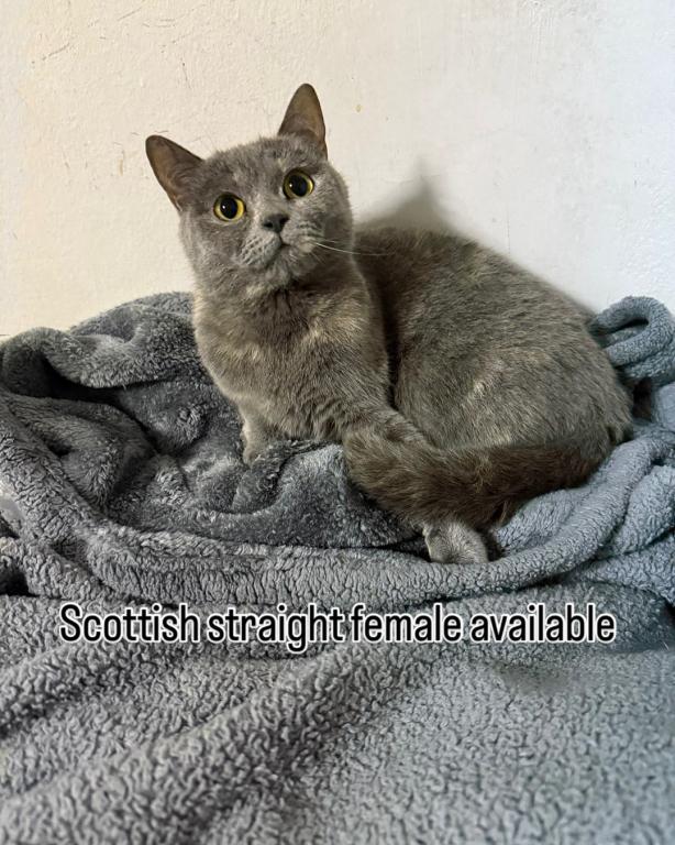 Scottish straight female available now she’s a very lovable girl loves to cuddle and very playful kitten is litter box trained kitten eats wet and dry food