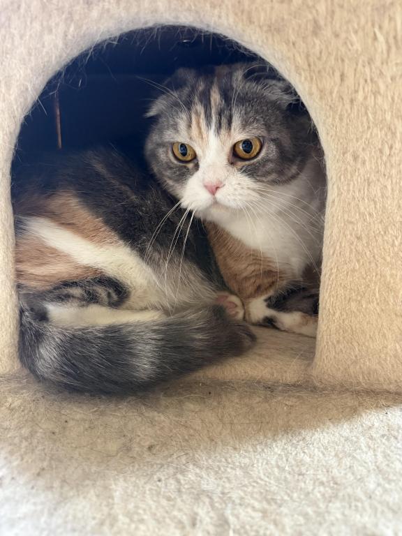 Beautiful retired girl. She must be the ONLY CAT in the home, and NO DOGS OR SMALL CHILDREN. Looking for a quiet MATURE home. INDOORS ONLY. She is very sweet and gentle, purrs when pet and will sleep in bed with you. She will be shy at first until she gains your trust. She is registered with CFA and WCF, originally from Ukraine, out of Imprimis folds.