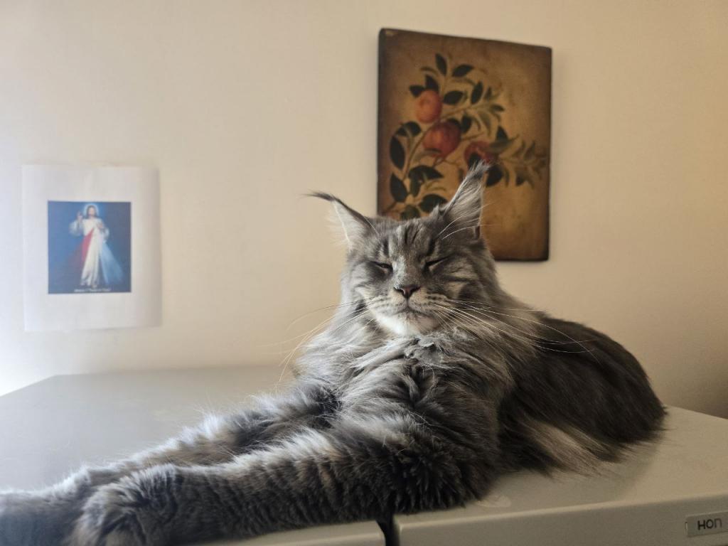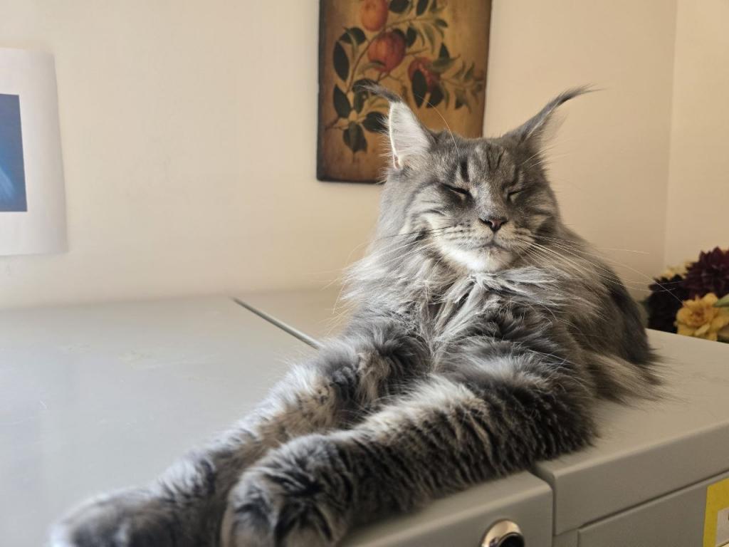Another super sweet girl that follows you around. Seems all the girls in this litter are. She is loving and likes to sit next to me while we watch television at night. Pretty independent will sometimes sleep in the bed and sometimes sleeps elsewhere. Gets along great with dogs.