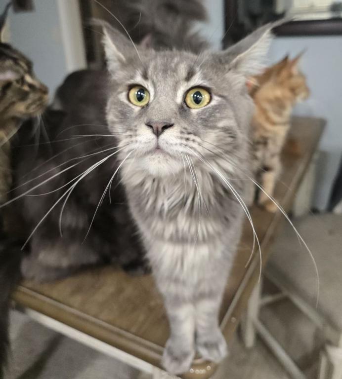Lylah is a very quiet curious kitten, super sweet personality and independent in nature but will still cuddle. She wants to see everything you are doing and is very smart. She leads the pack.