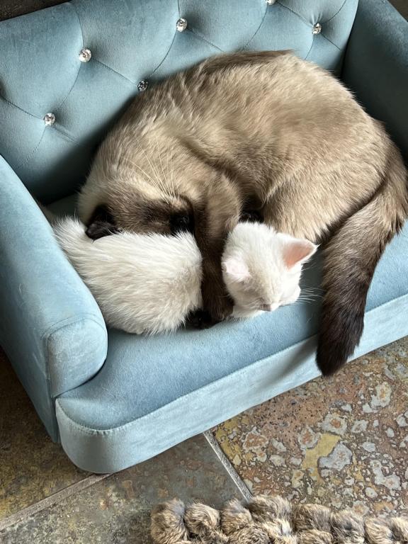 Spike is a very sweet guy , loves attention and to be loved on but also likes to do his own thing when you’re busy . He does well with all my cats and my dogs . If you want to skip the kitten age and start with an amazing cat he’s just your guy!