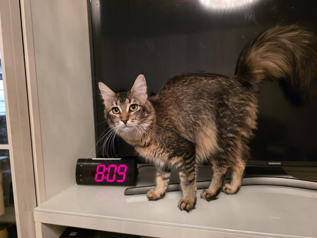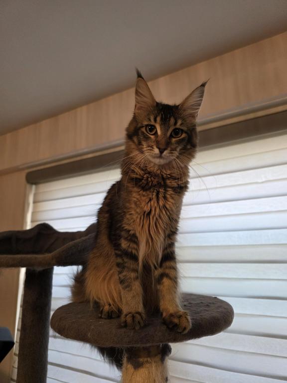 Very playful and beautiful kitty. Cute kitten ready for their forever home! Our adorable furball is very playful, affectionate, and looking for a loving family. Our kitten has been health-checked, vaccinated, and is well-socialized. Don't miss out on the chance to add a bundle of joy to your life. TICA Registered Maine Coon Kitten. She is vetted and ready to go. She will be Large when grown. The kitten is raised in my home and is very sociable. Used to people and dogs. She is full of love and energy. Contact us today to meet your new feline companion! No Spam. Deposit not required.