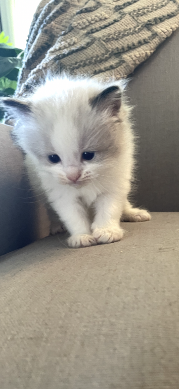 One bundle of Joy! Pure bred TICA registered femal bi color Ragdoll kitten.