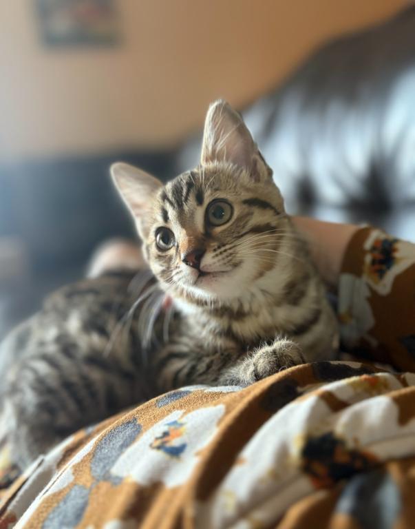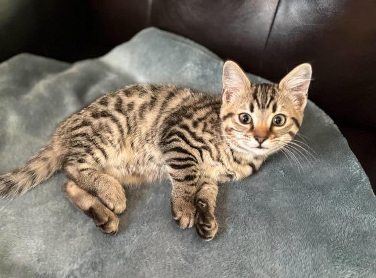 Kitten is siamese bengal mix He looks like a bengal and acts like a siamese! Super friendly and cuddly!
