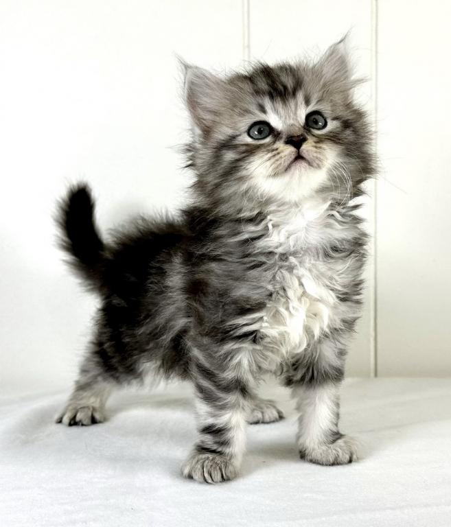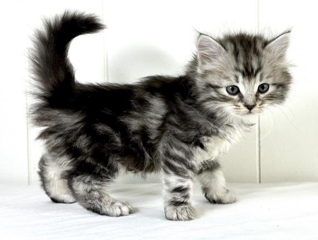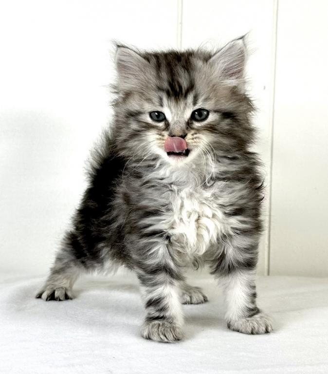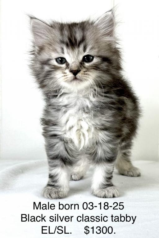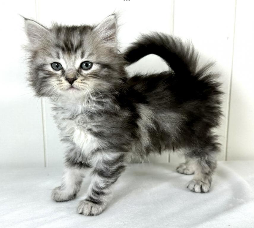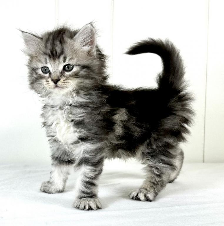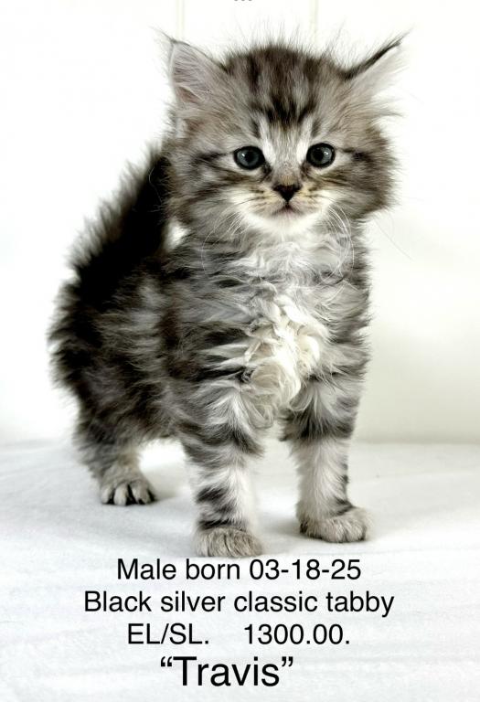 “Travis” is a very handsome boy. This Siberian kitty is a black silver classic tabby. Travis is full of spunk, and eager to explore all areas of the home. He is friendly and affectionate and at the same time full of energy. He’s looking for his forever home to settle into. We make the adoption process as easy as possible, and keep our prices reasonable. We have access to a few certified ground pet transporters with reasonable rates for your convenience. With that adorable face, just give a call, AND HE IS ALL YOURS! CONTACT US TODAY! Kristails Siberians.