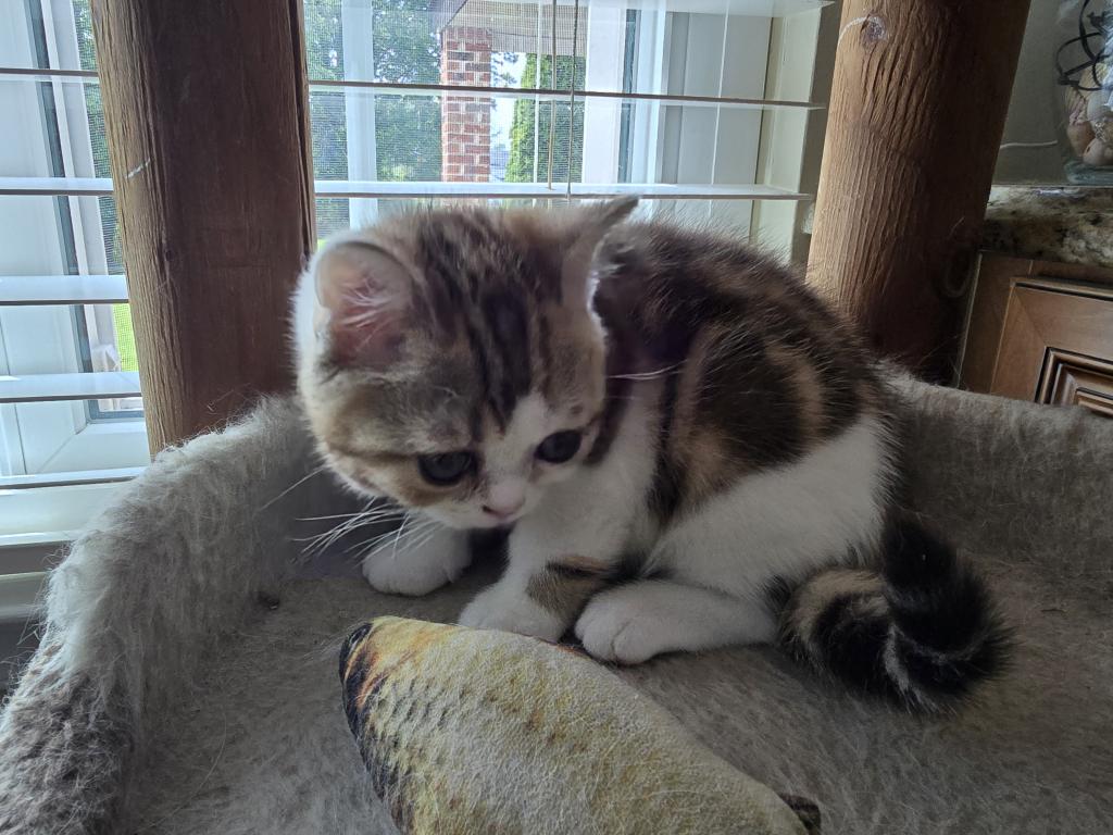 Beautiful Scottish straight boy short hair for sale. The D.O.B. is March 25th. We have also one girl and boy from the same litter folded ears kittens. They are very playful and affectionate turtle multi color kittens with thick fluffy short hair. They were born and raised in a loving home environment. They love to be around people and will often follow you as if he is a puppy. They are four months old and ready to go. They are vaccinated, dewormed and litter trained. Both of their parents are WCF registered. See pictures of the parents also. Please check Instagram video. If you are interested, text or call: 267-939-7901 Zak