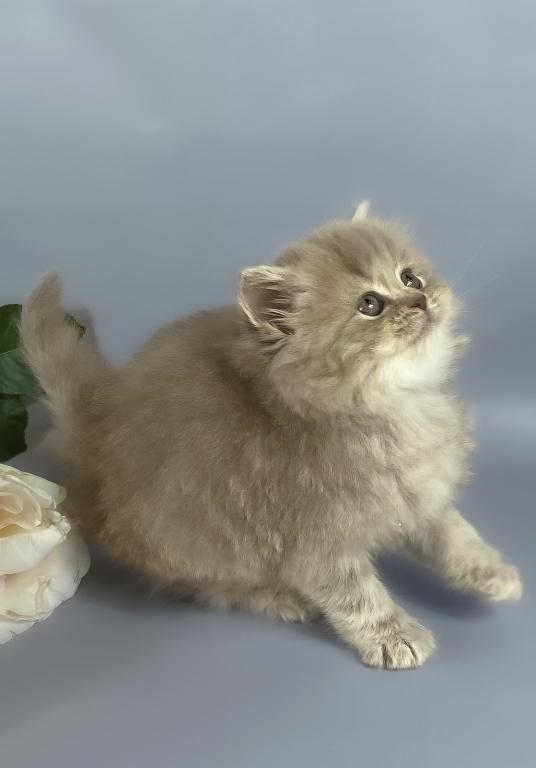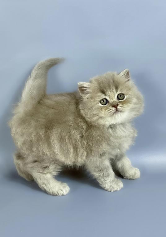 The Kukla British Longhair female in lilac showcases the breed’s signature plush, dense coat and gentle temperament. Known for their calm and affectionate nature, these cats make excellent companions. The lilac coloration adds a unique, soft hue to their luxurious fur, highlighting their elegant appearance. Ideal for those seeking a poised and loving feline with a distinctive look.