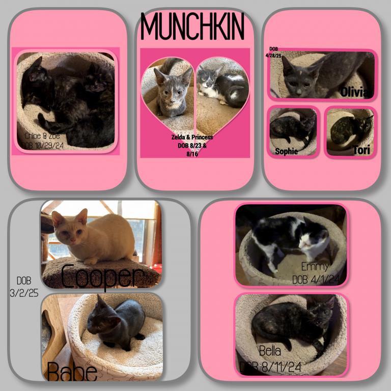3 females, 2 torti, 1 blue torti. Olivia, Tori & Sophie.