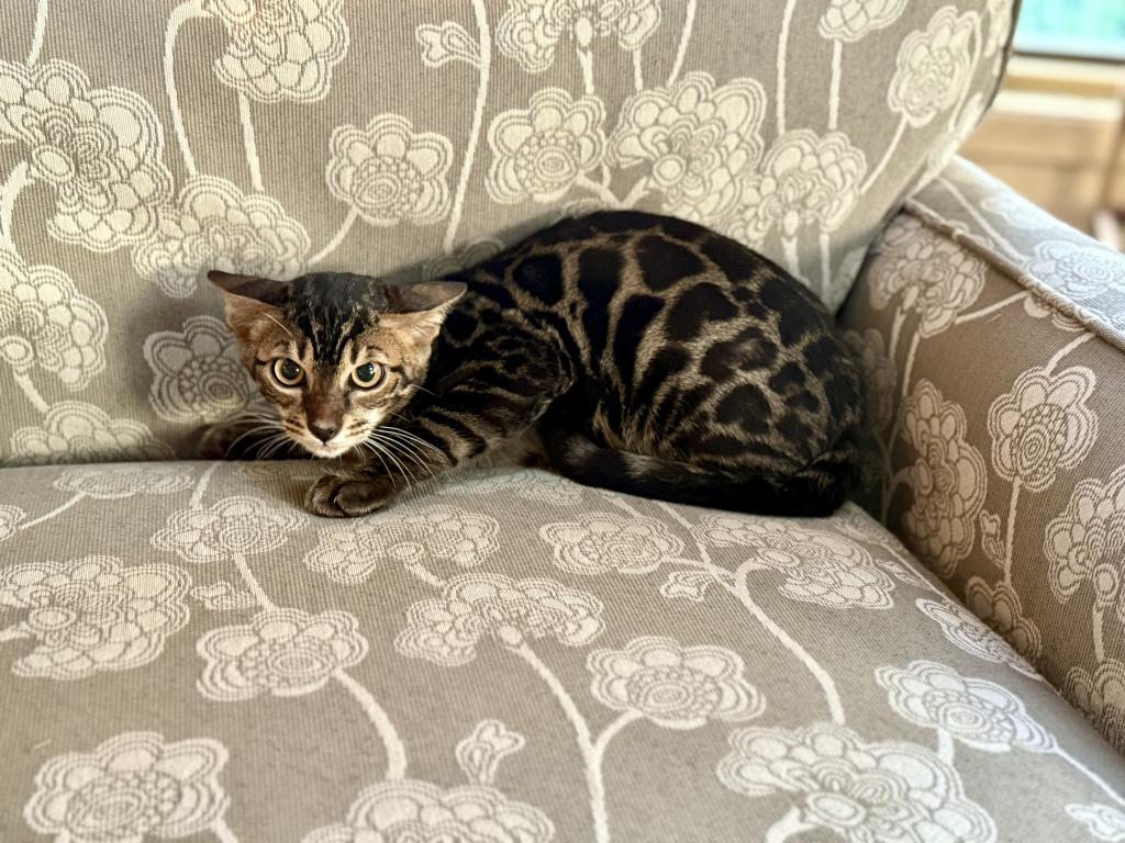 Healthy, playful kitten! Beautiful markings, very defined rosettes.