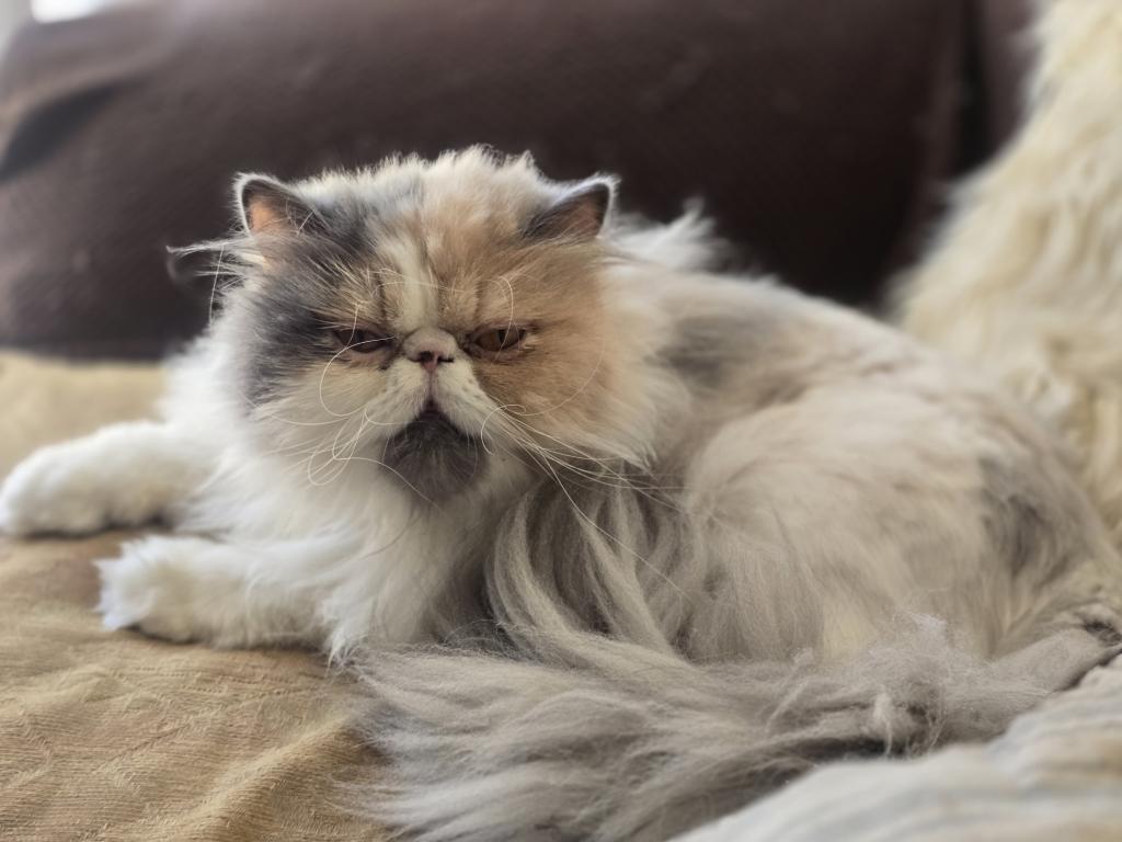 Cat has had all shots spayed all up to date and recently groomed she's a beautiful white gray and orange mini Persian cat she's almost two years old but still acts as though she's a kitten beautiful can have papers available from a cat breeder of Persian cats