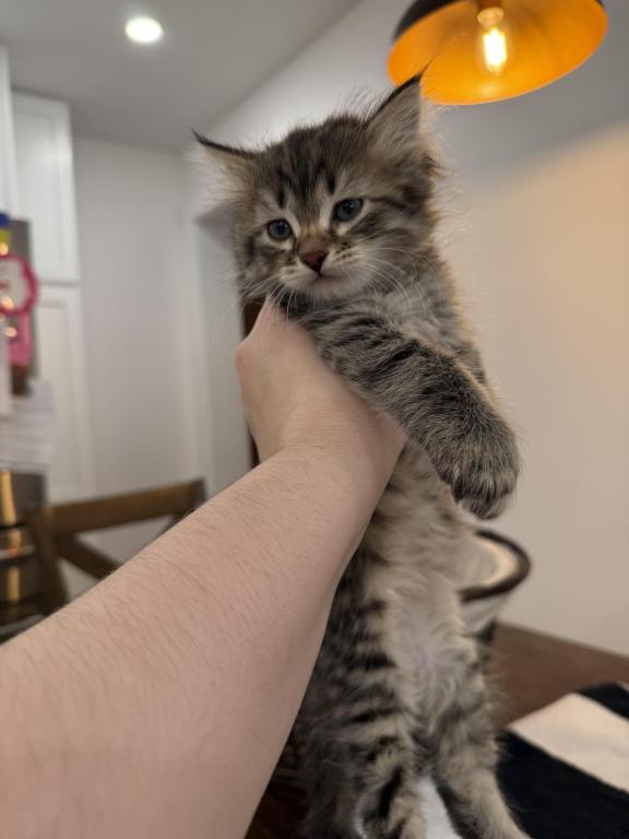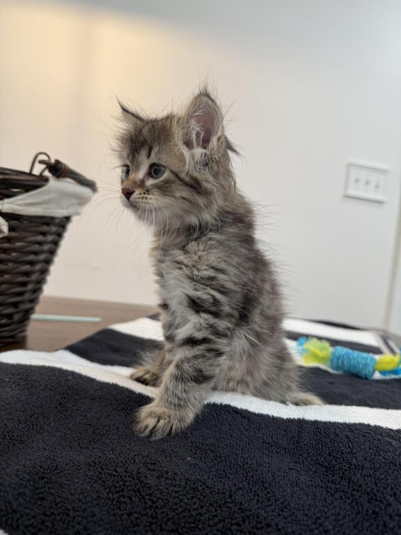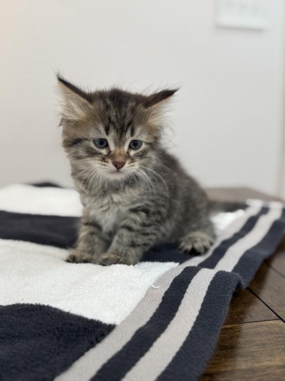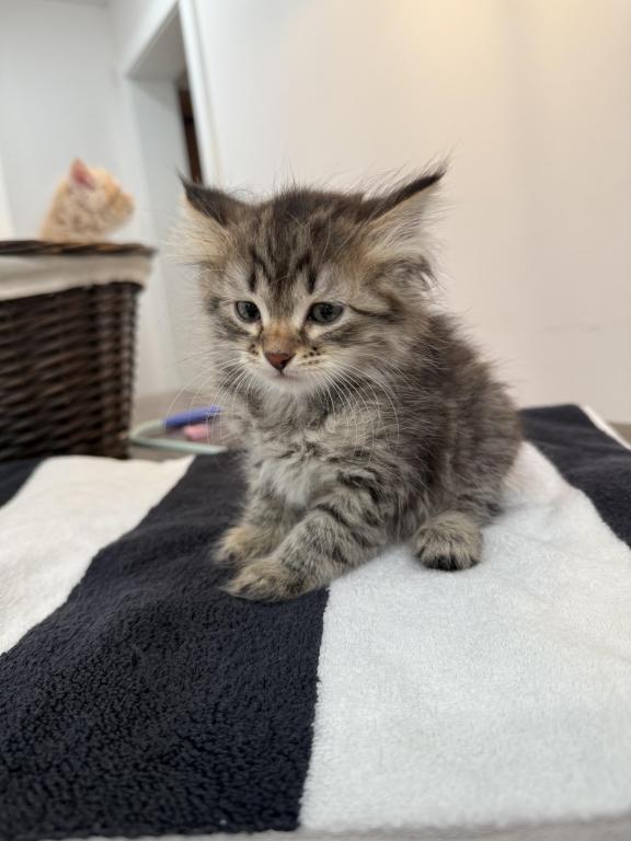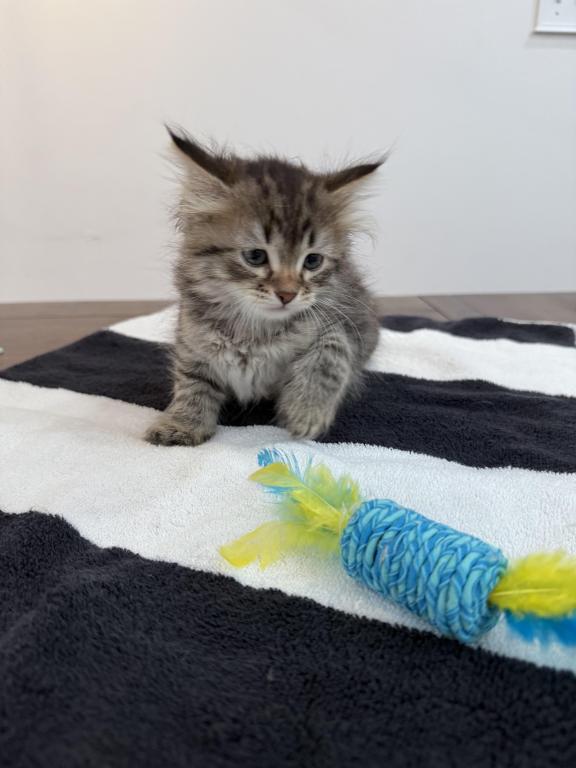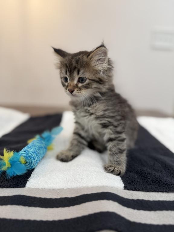 This kitten is a true little gentleman with soft, expressive eyes and a calm personality. He is affectionate, playful, and very brave. Loves to play actively, explore new places, and spend time with people.