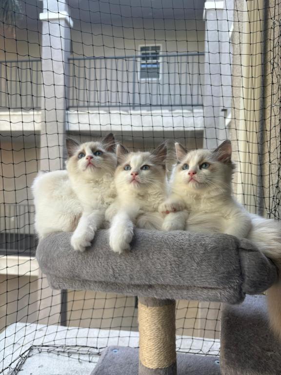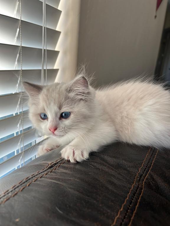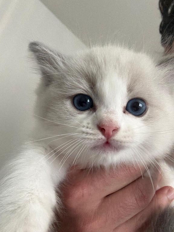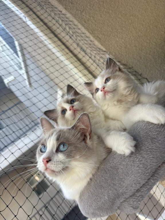 Lila is a beautiful Blue Bicolor Ragdoll girl born June 4, 2025, in Marina Del Rey, CA. She has bright blue eyes and a gentle, affectionate nature. Raised in our home with daily love and socialization, Lila is confident, playful, and sweet-tempered. Her parents, Sofia and Zoro, are imported from Europe and have multiple champions in their bloodlines, ensuring both health and beauty.