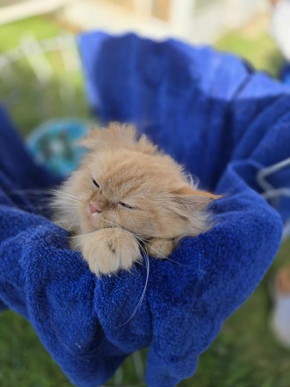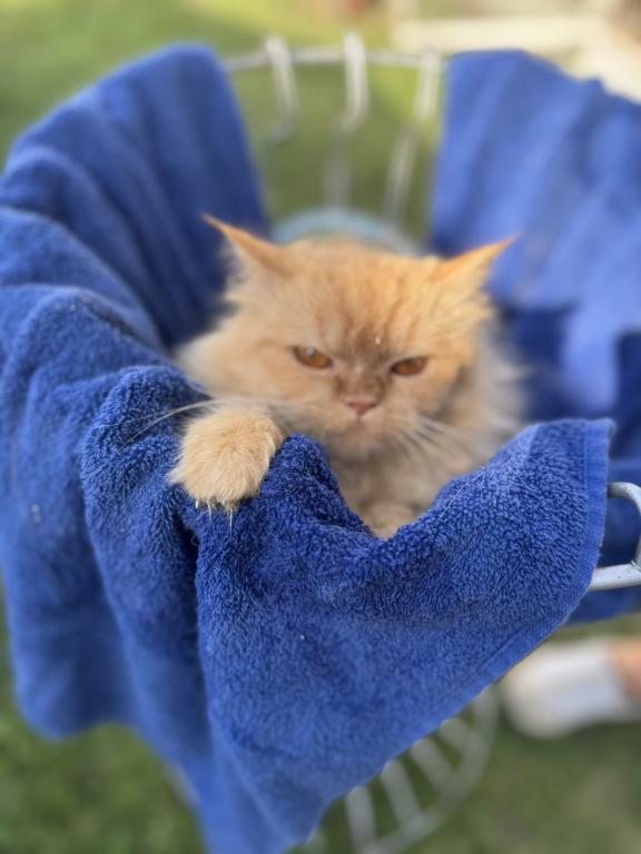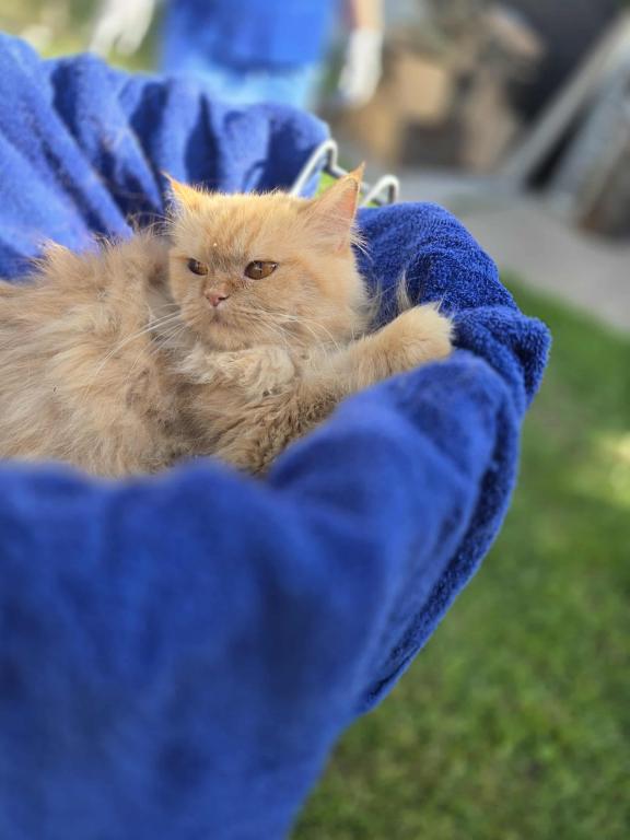 She enjoys cuddles, gentle playtime, and being close to people. Persians are known for their sweet, easygoing nature and make wonderful companions for families or individuals looking for a loyal, loving pet.