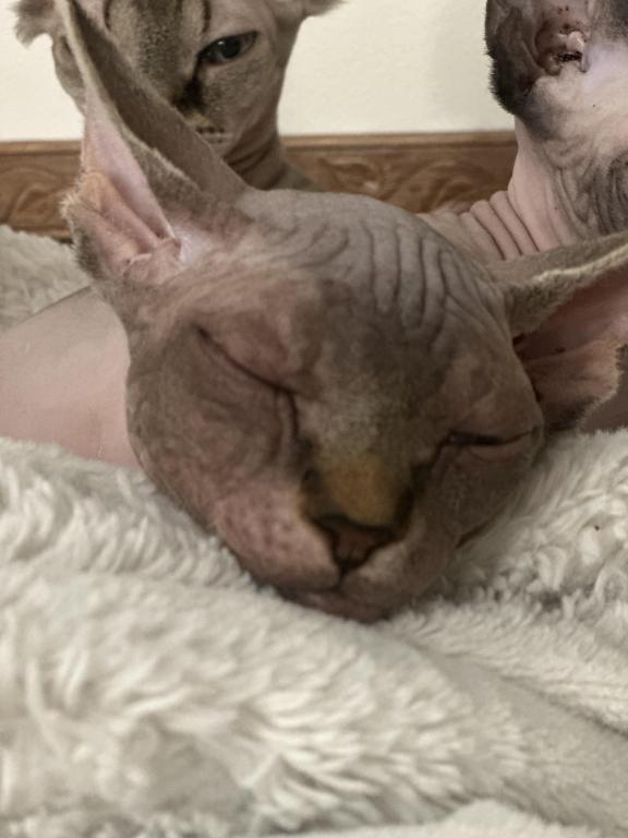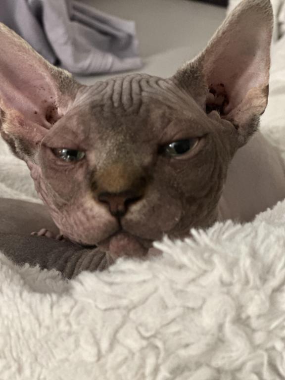 This calm sweet boy would do best in a more relaxed household. Loves to cuddle but needs to warm up first. Does well with other cats and dogs( the family's German Shepherd and Labrador)