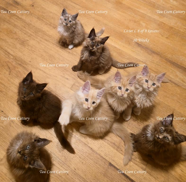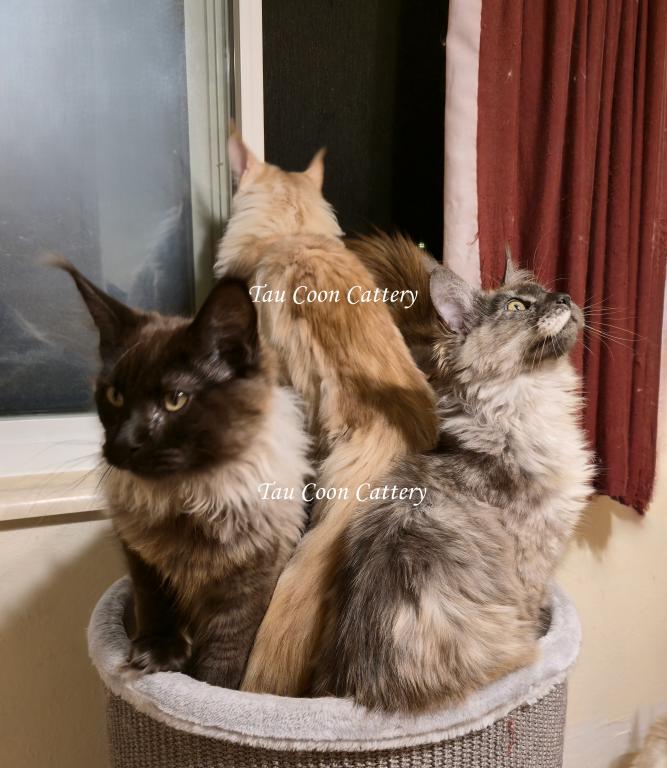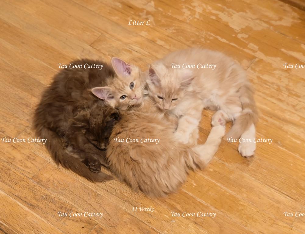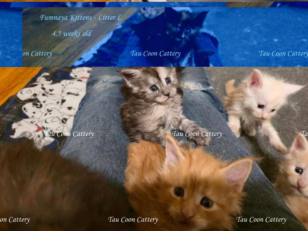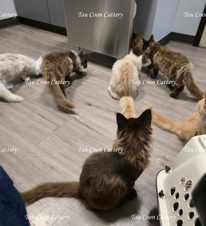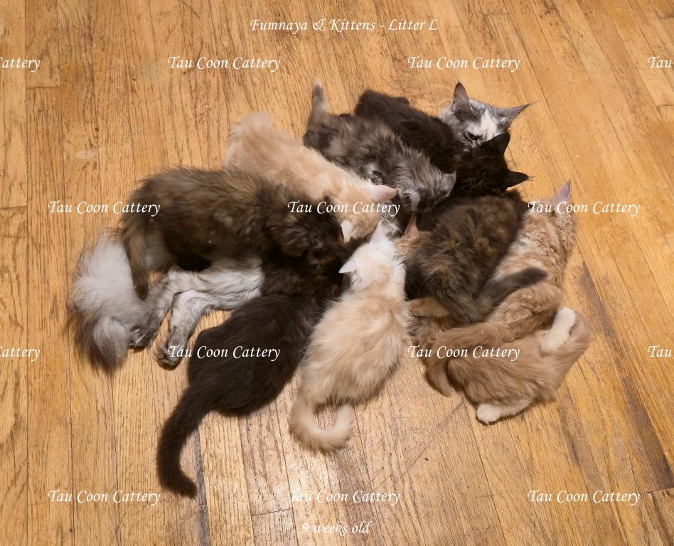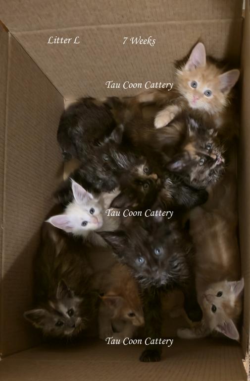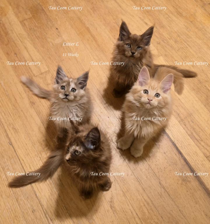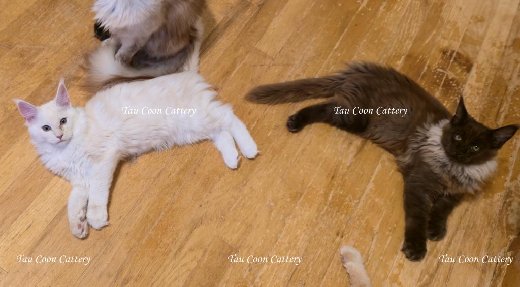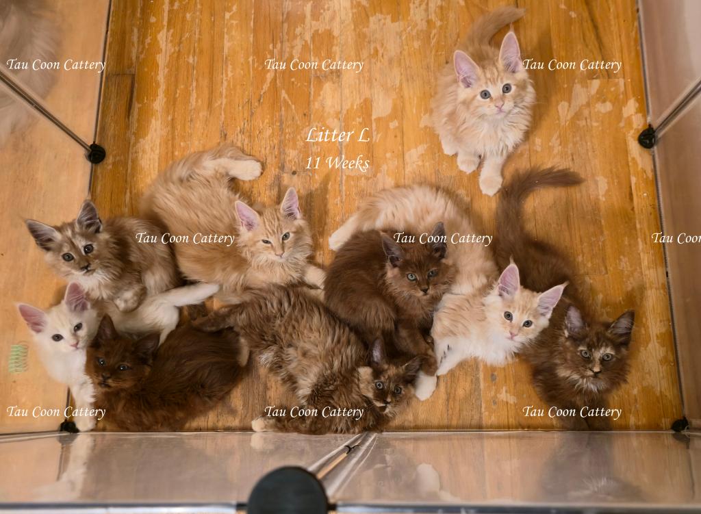 The kittens in this litter developed a stress/fever coat at ~8 weeks. It’s not really noticeable on the red kitties but it’s very noticeable on the ones with black coats (black, black smoke, black torties) so the kittens have reddish brown coloration where they are actually black or smoke/silver. It is is not what the kitten will look like as it grows; the earlier pictures show what coloring to expect when the coat corrects itself with the exception that the smoke will be more pronounced.