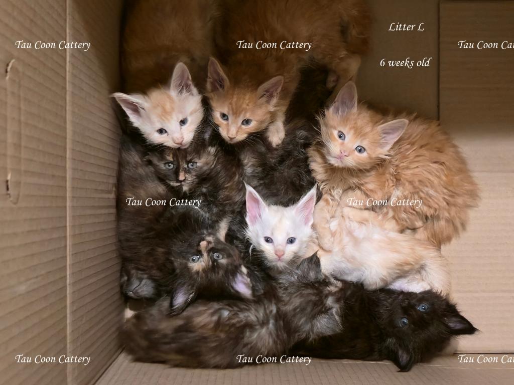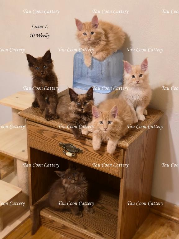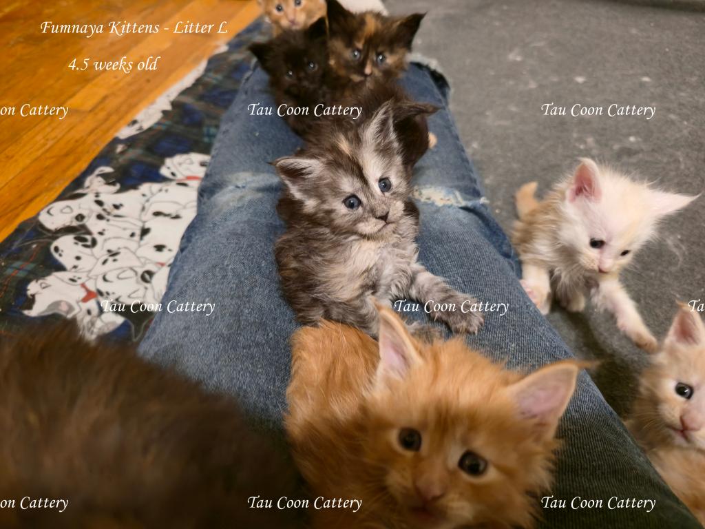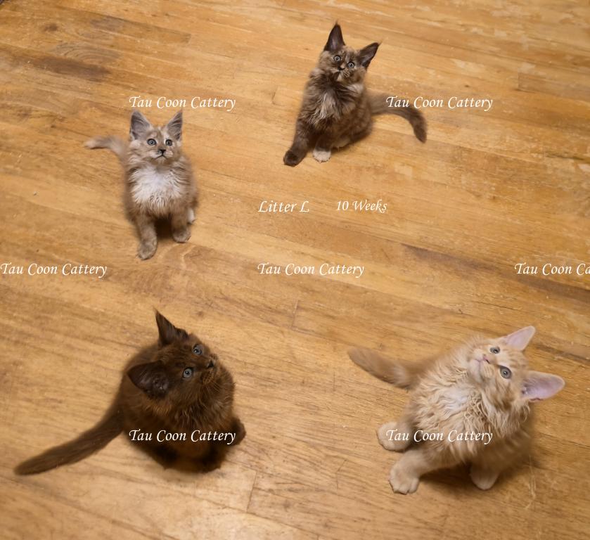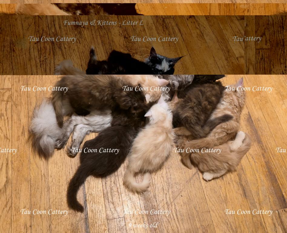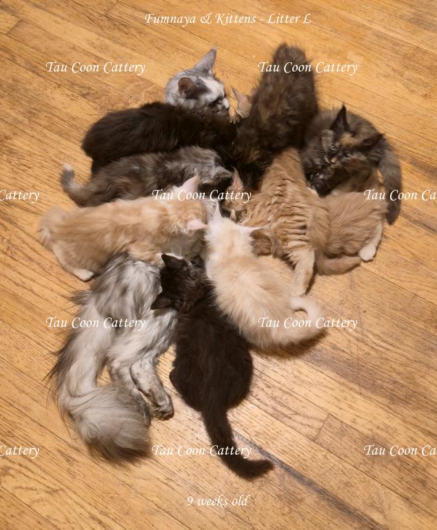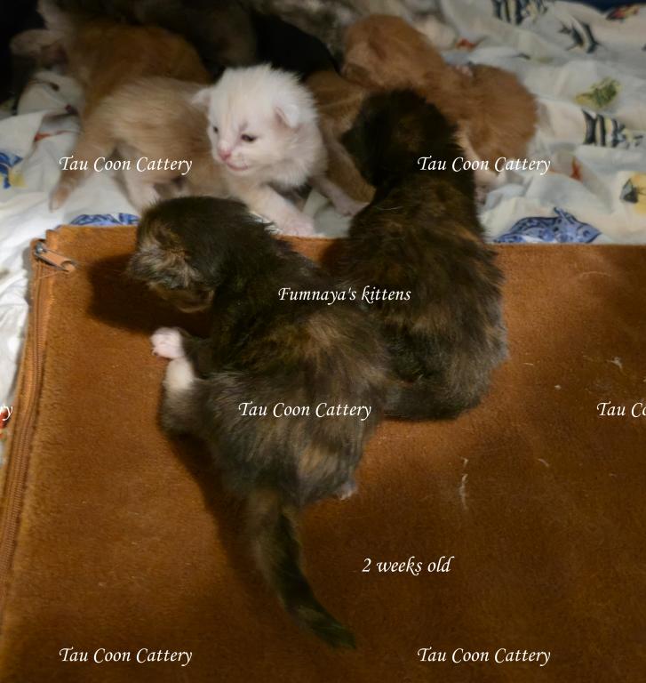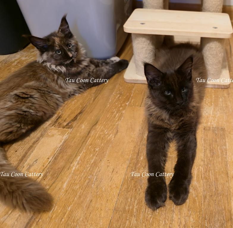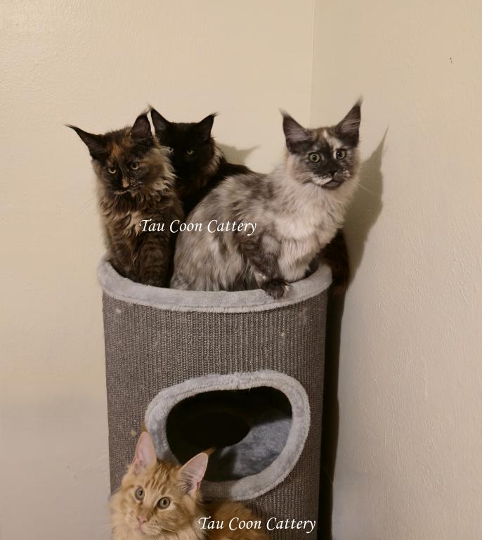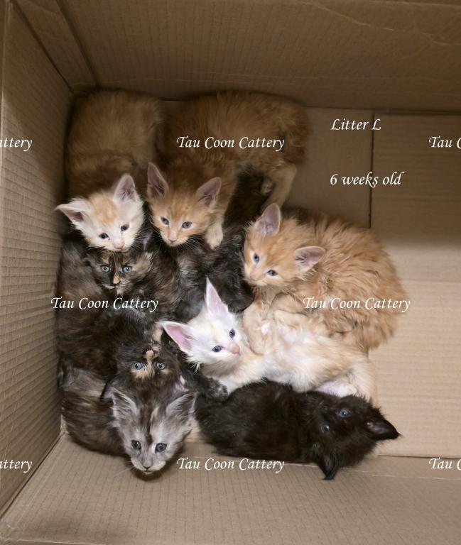 The kittens in this litter developed a stress/fever coat at ~8 weeks. It’s not really noticeable on the red kitties but it’s very noticeable on the ones with black coats (black, black smoke, black torties) so the kittens have reddish brown coloration where they are actually black or smoke/silver. It is is not what the kitten will look like as it grows; the earlier pictures show what coloring to expect when the coat corrects itself with the exception that the smoke will be more pronounced.