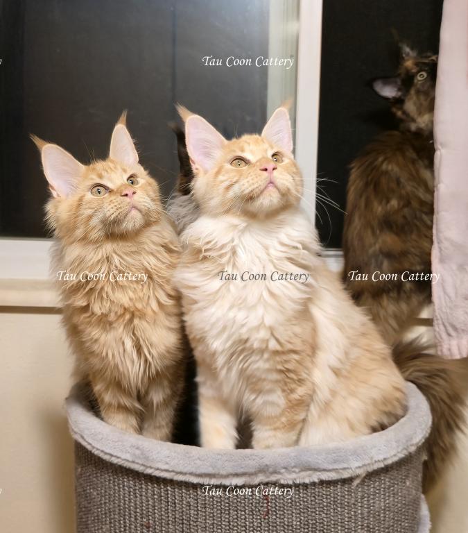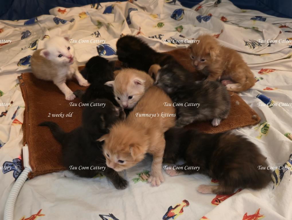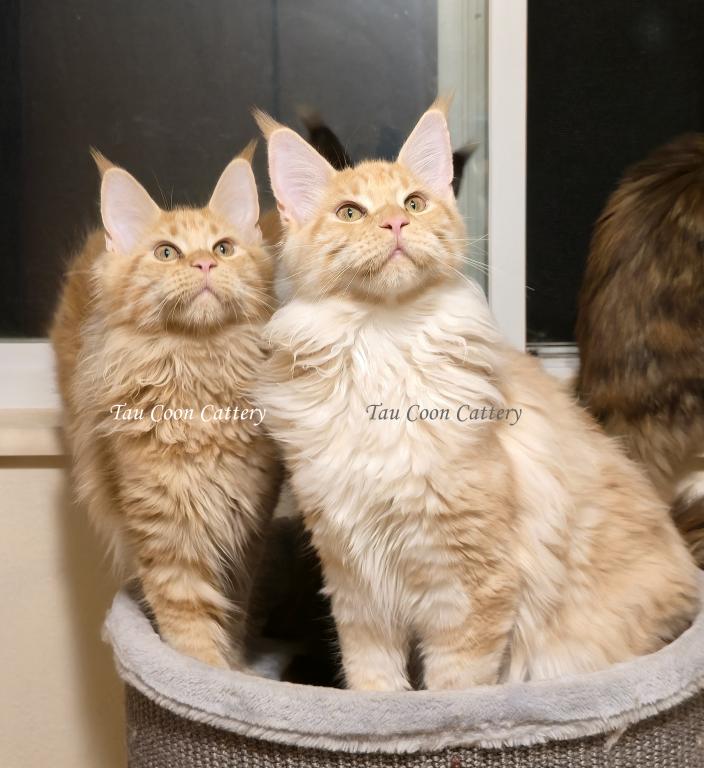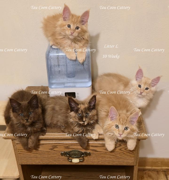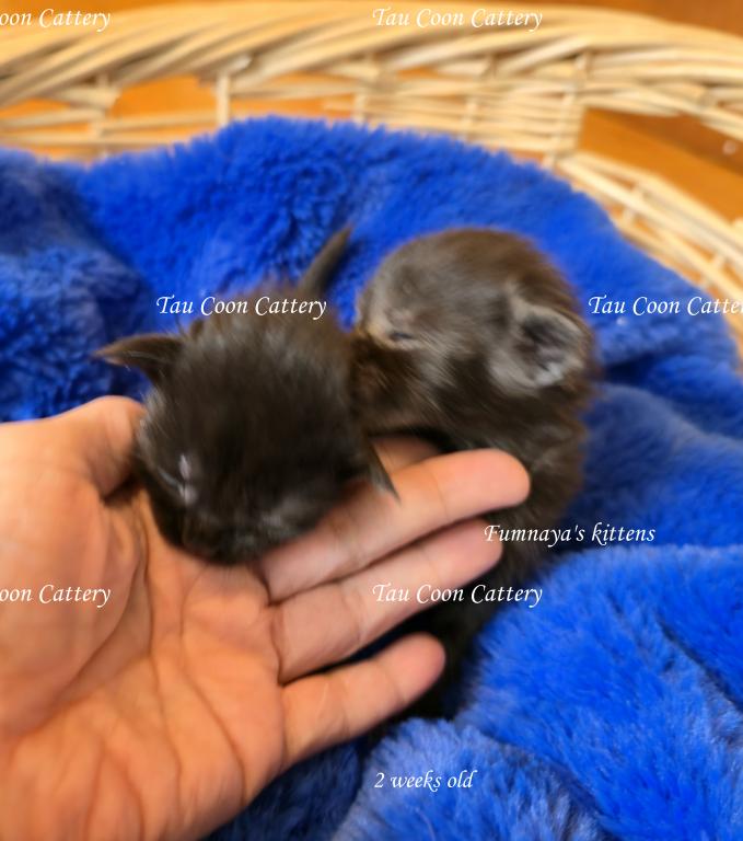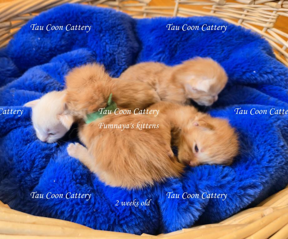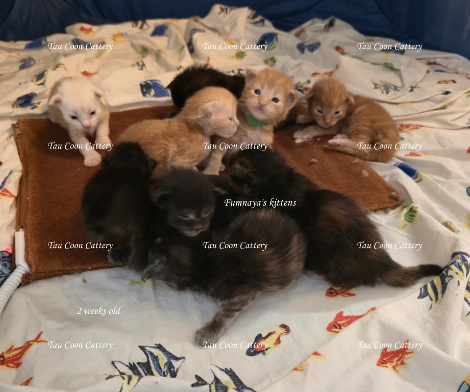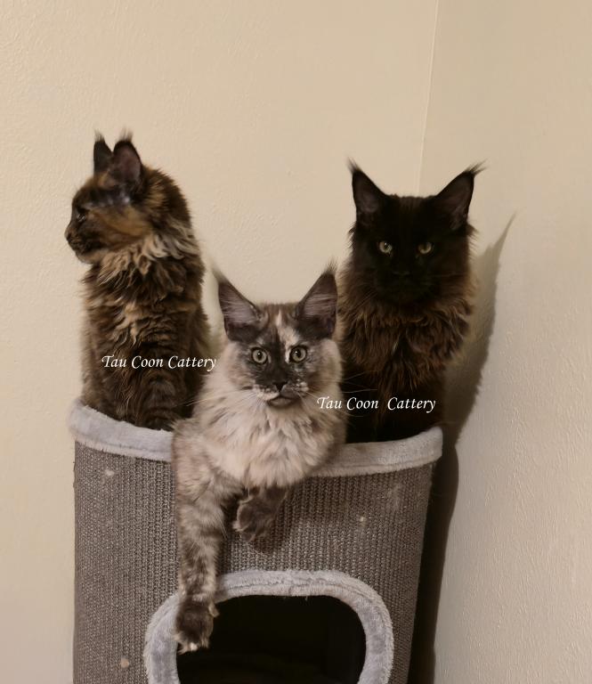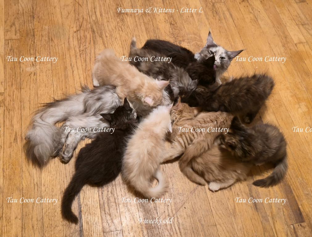 The kittens in this litter developed a stress/fever coat at ~8 weeks. It’s not really noticeable on the red kitties but it’s very noticeable on the ones with black coats (black, black smoke, black torties) so the kittens have reddish brown coloration where they are actually black or smoke/silver. It is is not what the kitten will look like as it grows; the earlier pictures show what coloring to expect when the coat corrects itself with the exception that the smoke will be more pronounced.