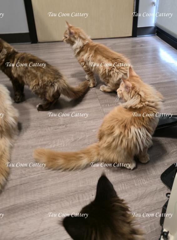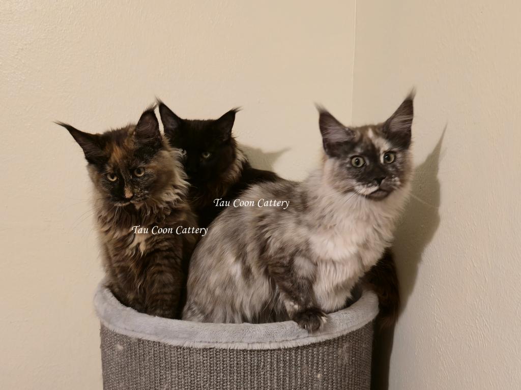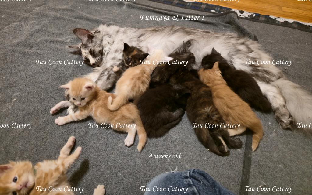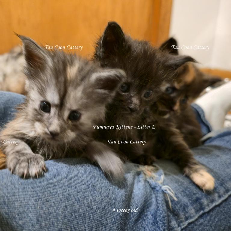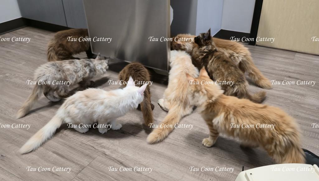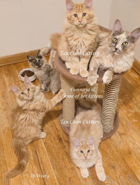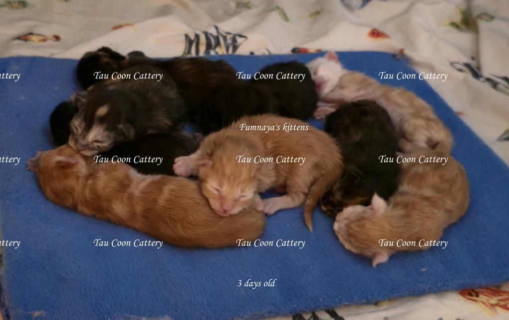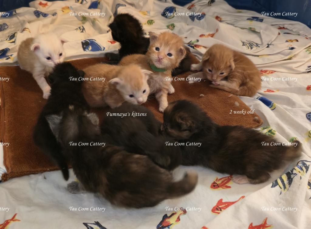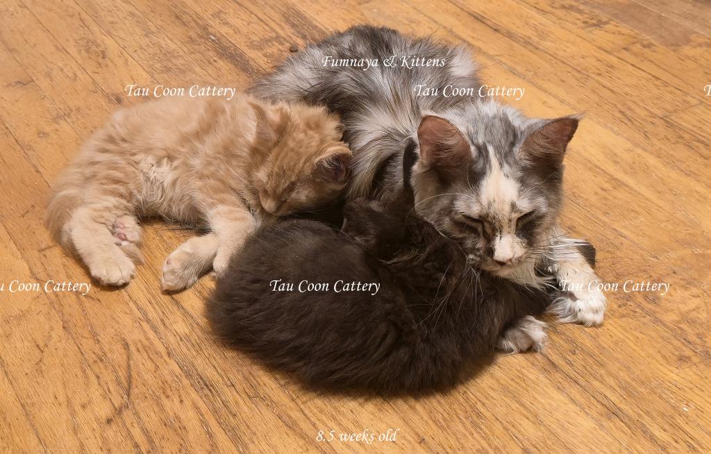 The kittens in this litter developed a stress/fever coat at ~8 weeks. It’s not really noticeable on the red kitties but it’s very noticeable on the ones with black coats (black, black smoke, black torties) so the kittens have reddish brown coloration where they are actually black or smoke/silver. It is is not what the kitten will look like as it grows; the earlier pictures show what coloring to expect when the coat corrects itself with the exception that the smoke will be more pronounced.