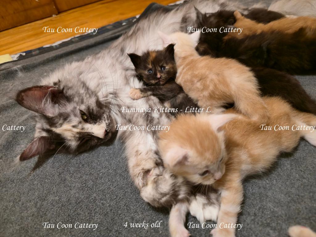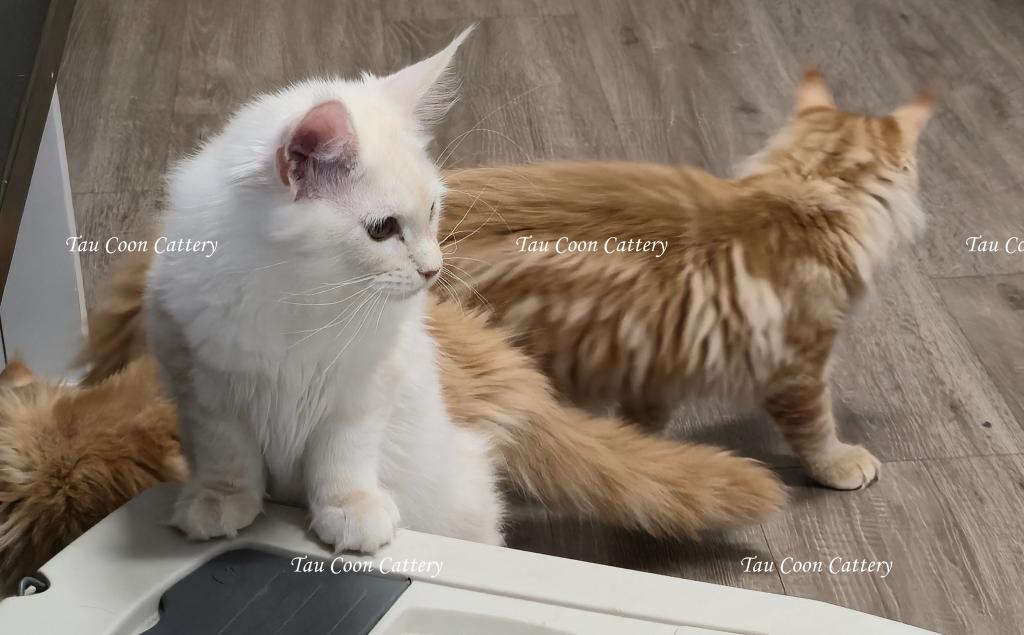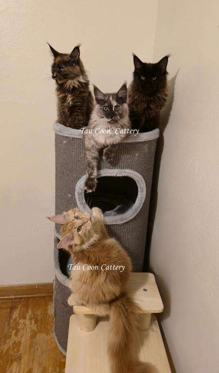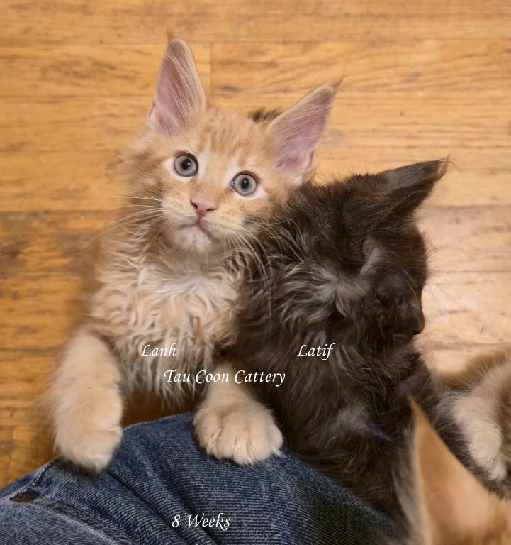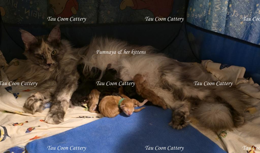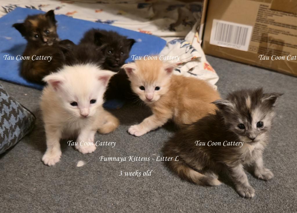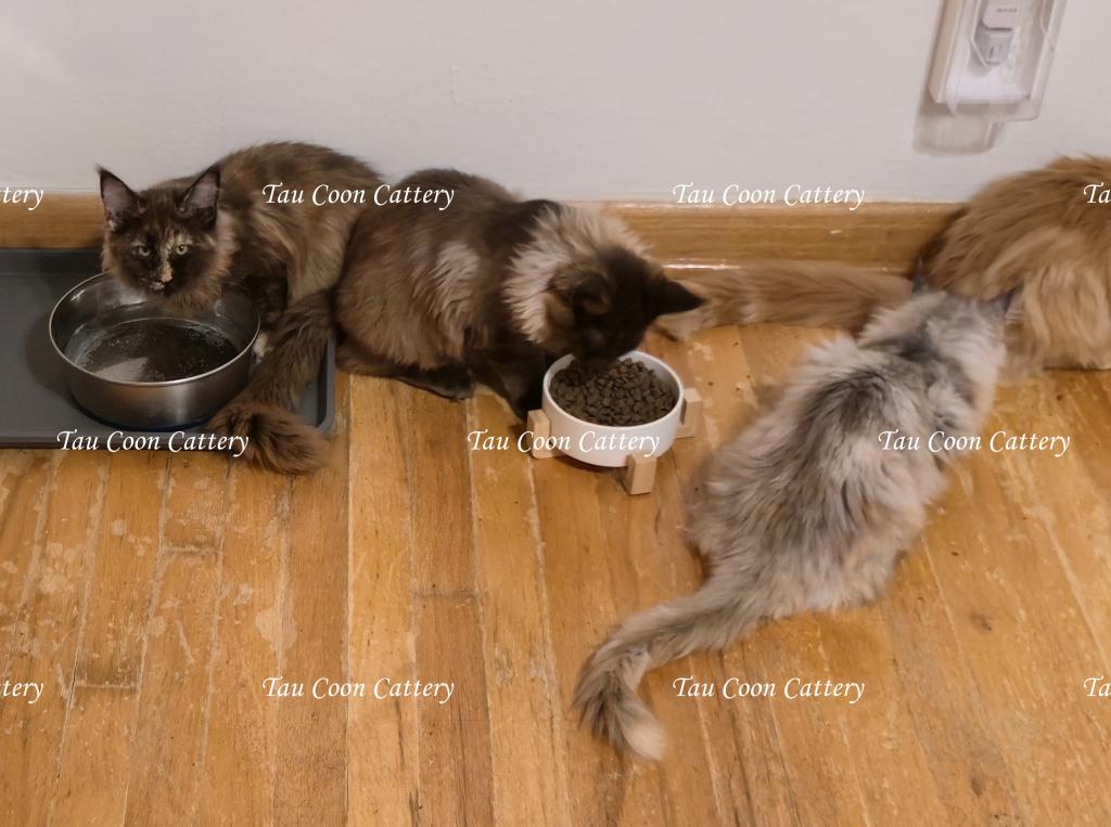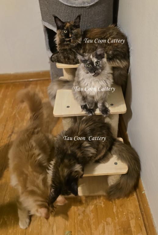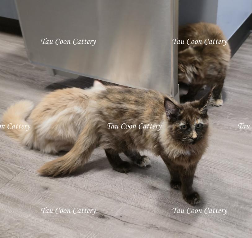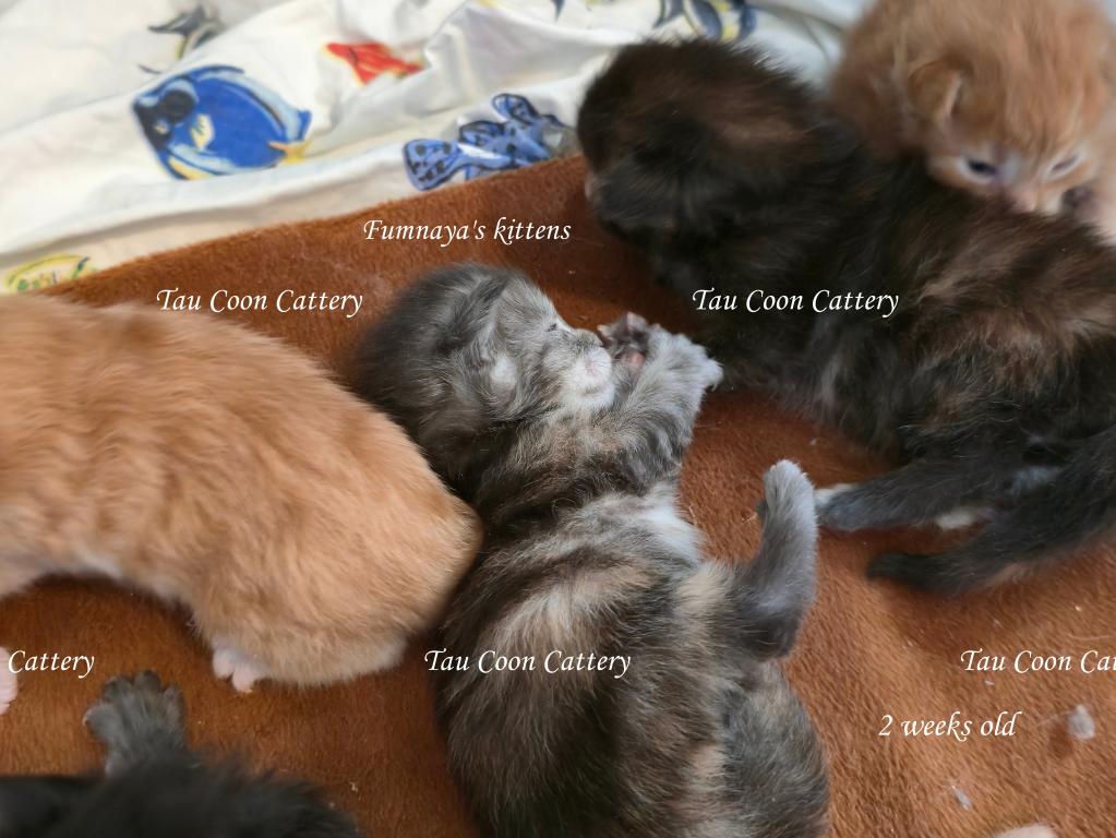 The kittens in this litter developed a stress/fever coat at ~8 weeks. It’s not really noticeable on the red kitties but it’s very noticeable on the ones with black coats (black, black smoke, black torties) so the kittens have reddish brown coloration where they are actually black or smoke/silver. It is is not what the kitten will look like as it grows; the earlier pictures show what coloring to expect when the coat corrects itself with the exception that the smoke will be more pronounced.