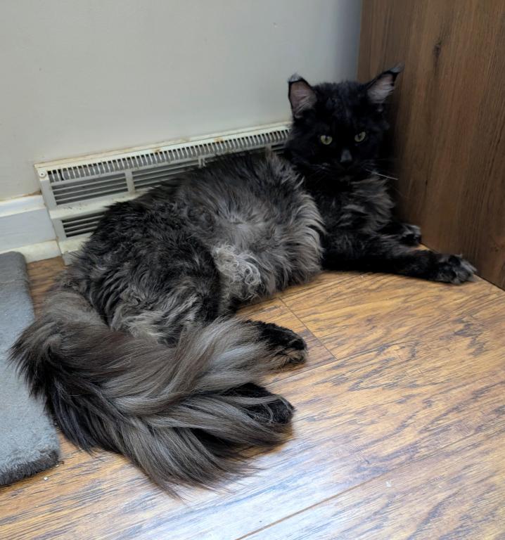 This amazing, lovable boy is going to become favorite of everyone in the household. Loves to snuggle, sleep on with the head on the pillow with you,purr for days. And I have not seen more affectionate cat in my life! Black smoke makes him look sharper than James Bond.