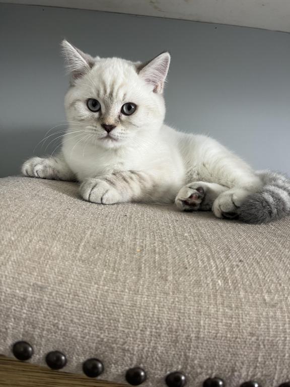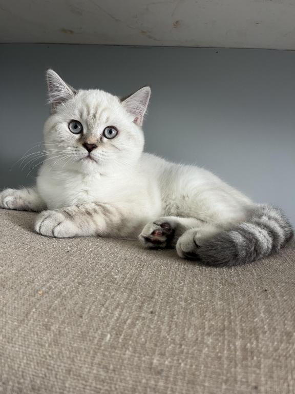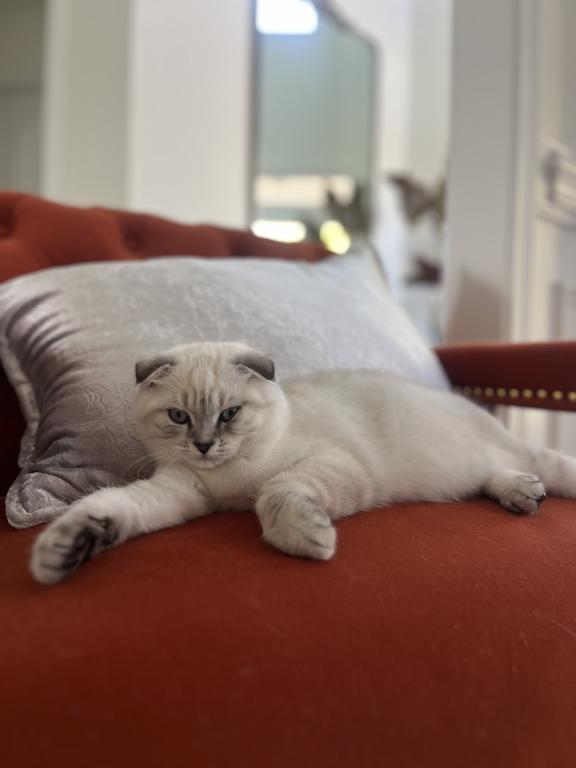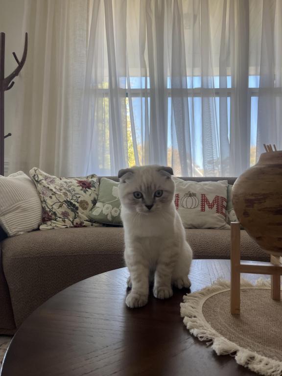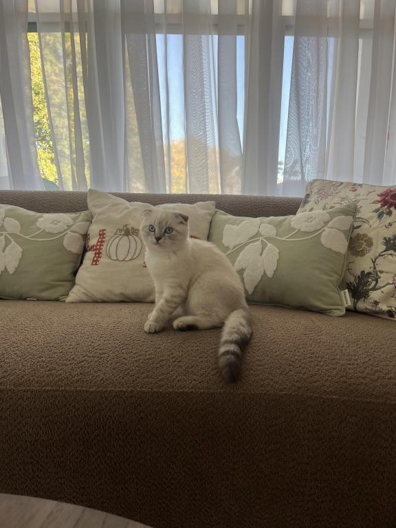 Theo is a Purebred Scottish fold, he is very cuddly and sweet indoor cat. He loves to play with toys,kids,adults, other cats like his litter mate Tayah. He is not aggressive, does not bite or scratch. Theo eats wet food and is trained to go potty in the litter box. He is very social and enjoys being around the excitement of the home. He is not neutered. He will be up to date with his shots by the time of pick up. He will fit right into a loving home where he is played with and cared for.