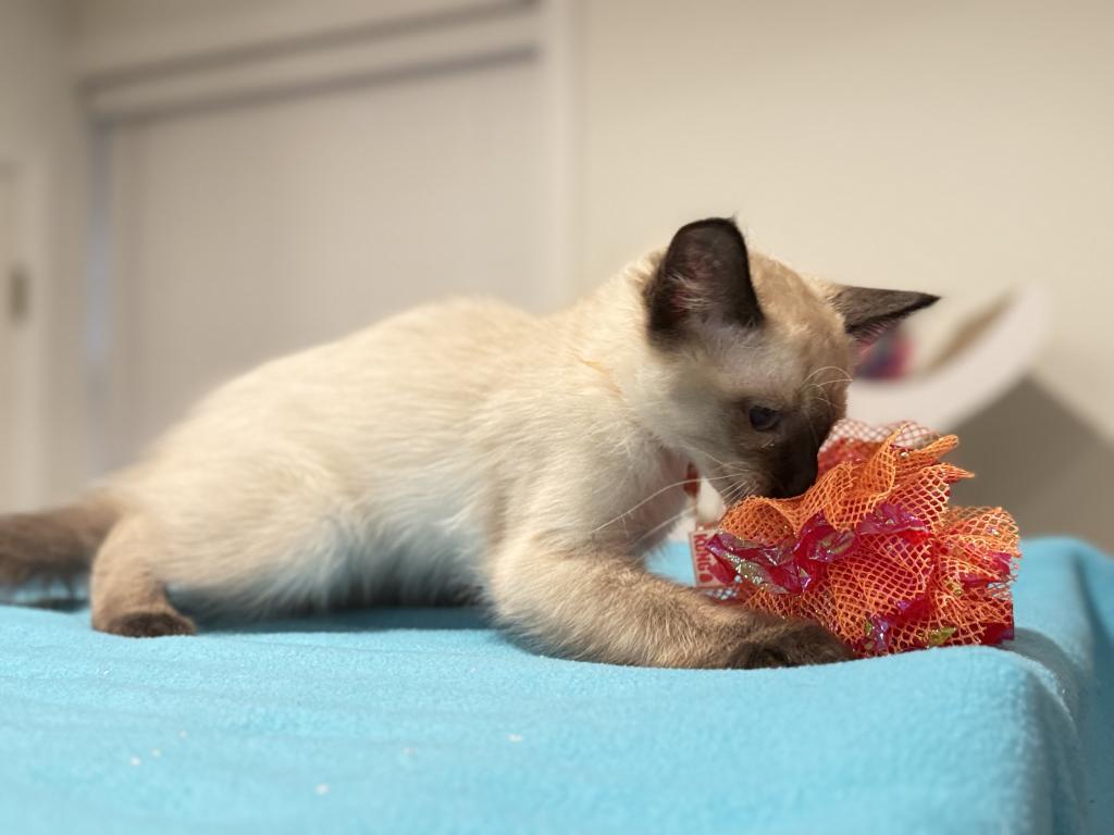 The Athletic, Affectionate Shadow. Forget the lap cat image—Jasper is a dynamo! He is incredibly active and treats every laser pointer dot and wand toy as a serious mission. His athleticism is matched only by his profound need for human attention. He demands to be part of the action, whether he's helping you "type" on the keyboard or supervising dinner preparation. He's playful, engaged, and thrives on interaction. Very outgoing and energetic temperament, gorgeous ivory-white body with rich, dark points.