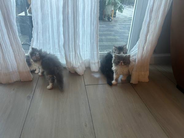 I have 4 Persian kittens left. 3 out of 4 are extreme flat face. They have had their first wellness check vaccine and deworming. Great around kids other cats and people. Mom and dad on site.