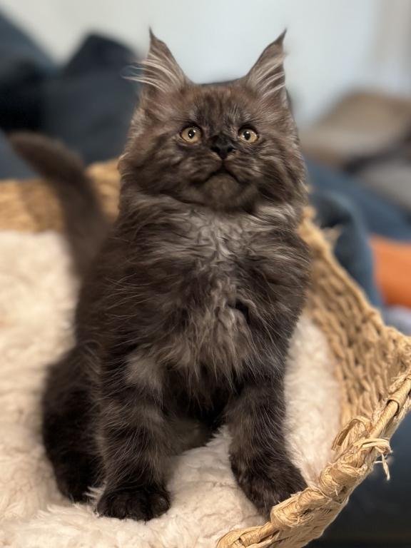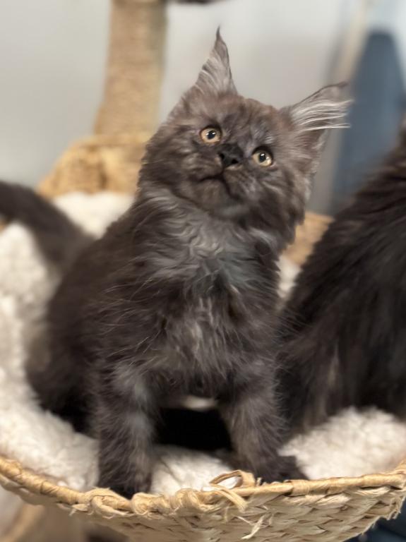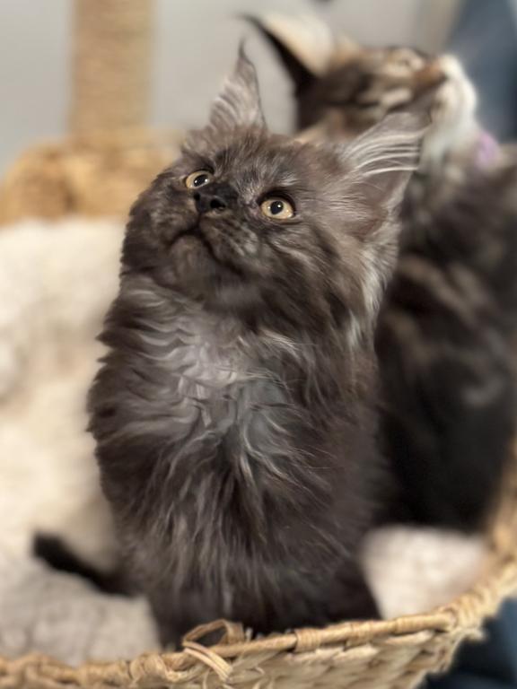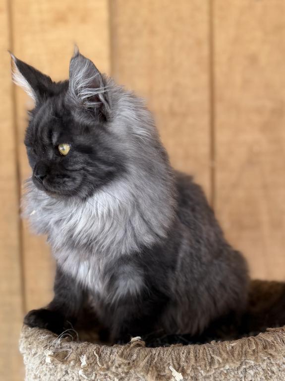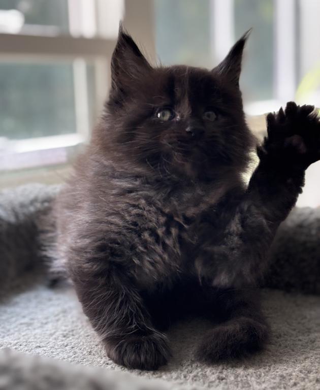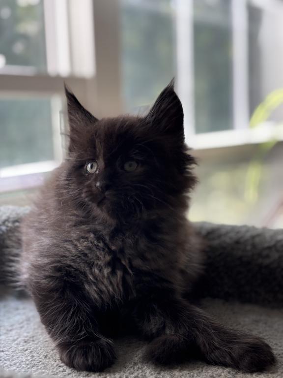 Absolutely breathtaking black smoke Maine Coon male — already showing phenomenal type and presence.