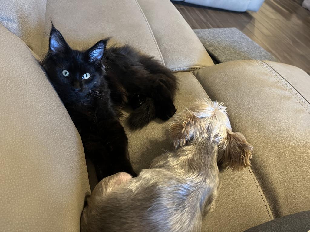 Kittens are well socialized with other animals, adults and kids. Both parents are larger Maine coon cats. All will be pedigreed and Tica registered. Kittens go home with registration papers, up to date vaccine record, potty trained and personal forever blanket with mom's scent. :)