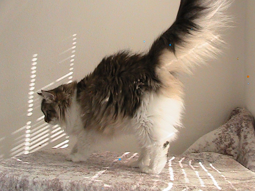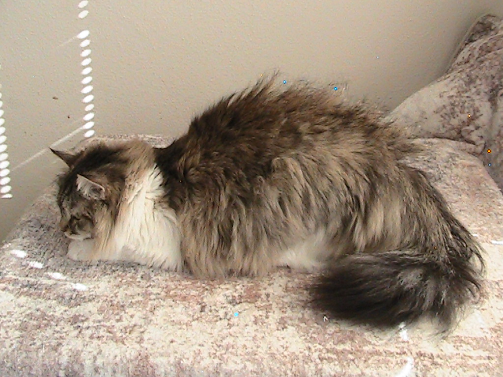 Riley is a petite yet very fluffy girl, with a gorgeous tail. She's active and playful, very attentive and engaged. She's a beautiful, affectionate companion.
