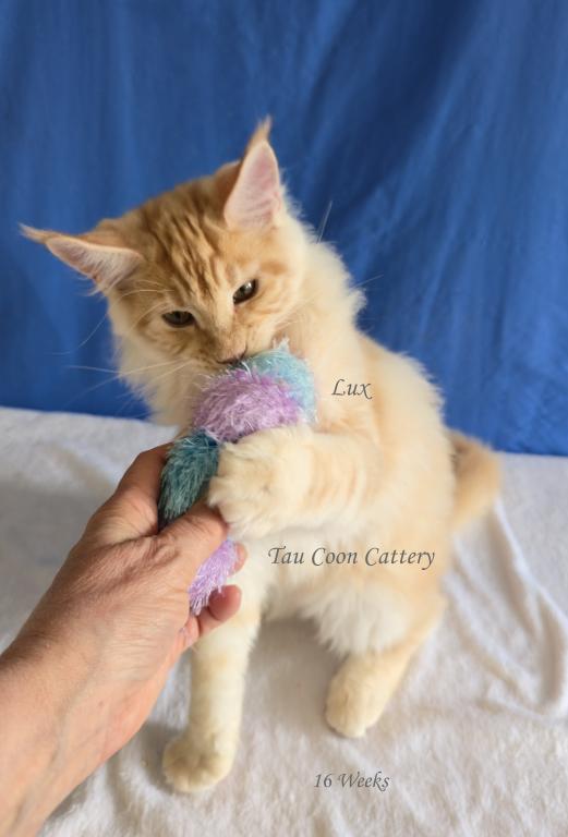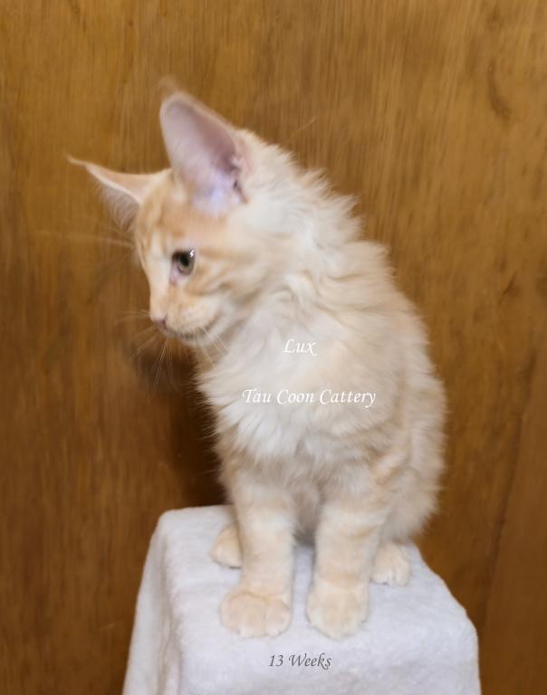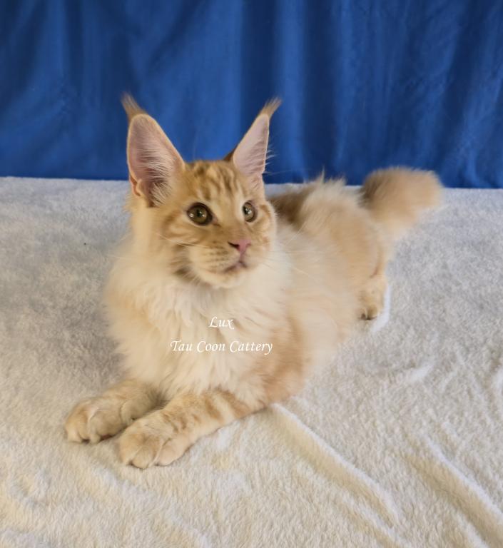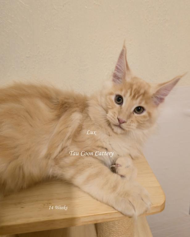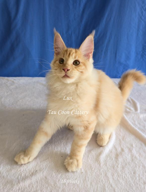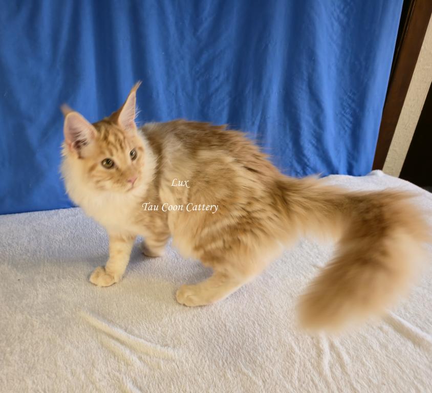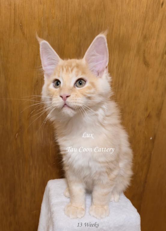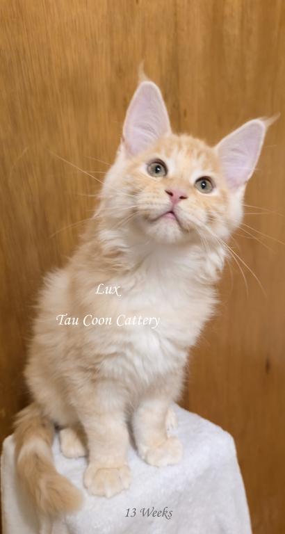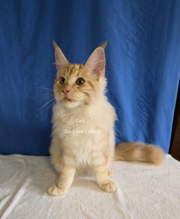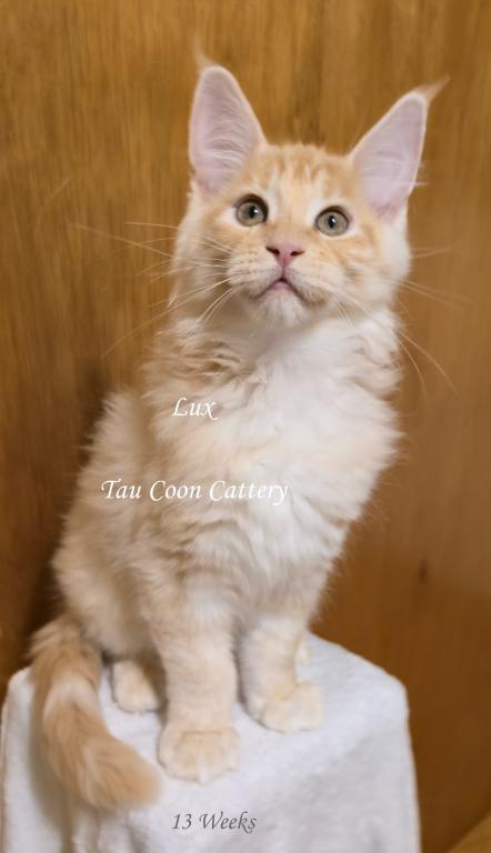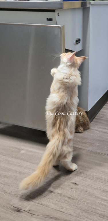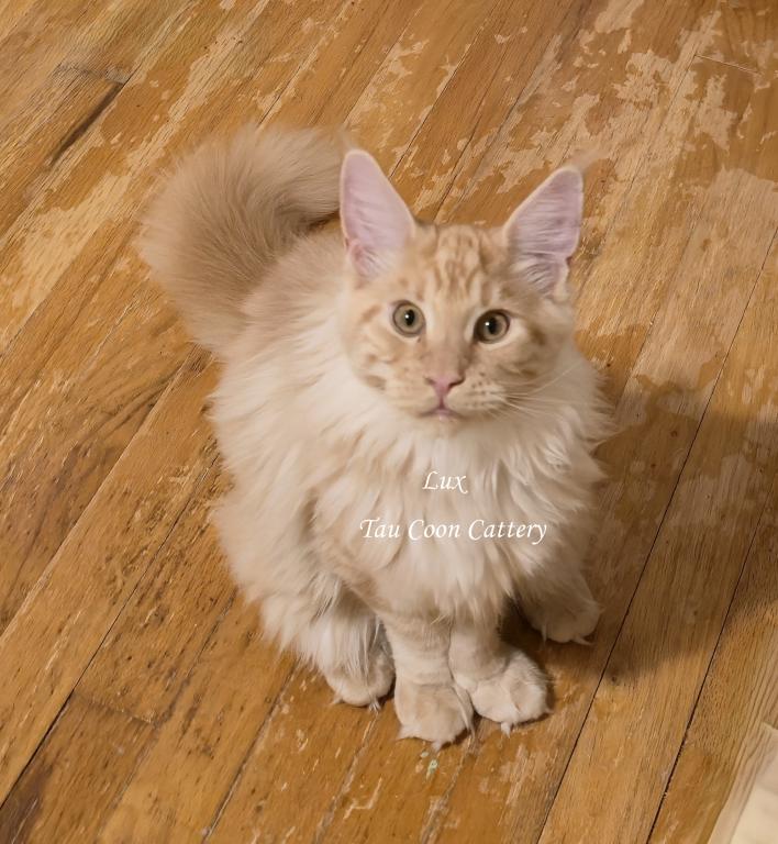 Super sweet and loving Maine Coon. The kitten is going to steal your heart. Maine Coons are known for being very dog like and some are leashed trained and go on walks with their humans, some are adventure kitties and others stay home with their people. They have magnificent personalities that brighten the lives of their humans. Maine Coons along with cats and dogs with a proper introduction.