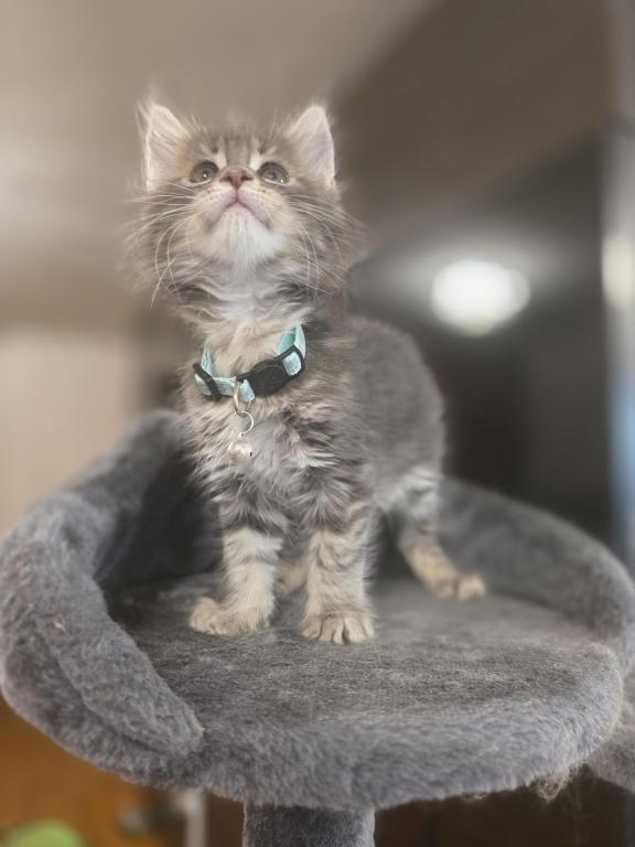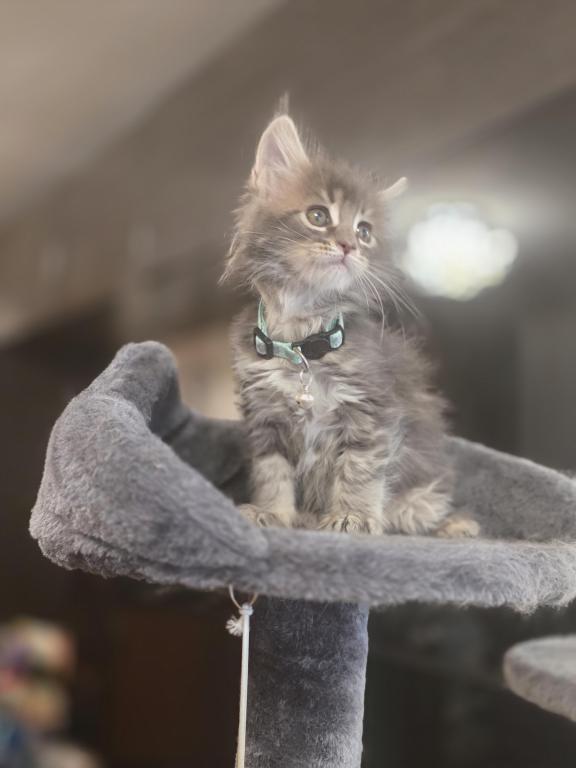 Very playful and beautiful kitty. Cute kitten ready for their forever home! Our adorable furball is very playful, affectionate, and looking for a loving family. Our kitten has been health-checked, vaccinated, and is well-socialized. Don't miss out on the chance to add a bundle of joy to your life. TICA Registered Maine Coon Kitten. He is vetted and ready to go. He will be Large when grown. The kitten is raised in my home and is very sociable. Used to people and dogs. He is full of love and energy. Contact us today to meet your new feline companion!