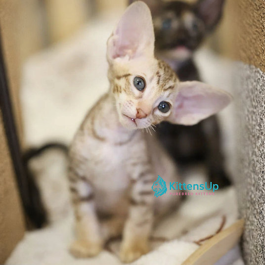 Meet Faina, an adorable Peterbald kitten with a unique short coat and big expressive ears. This playful and affectionate kitten is ready to bring joy and charm into your home.