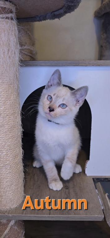 Autumn is very playful and active. likes scritches, and cuddles. Confident, independent, and sassy. Would do better in a home with no young kids as shes not as comfortable being held by little ones, but not aggressive.