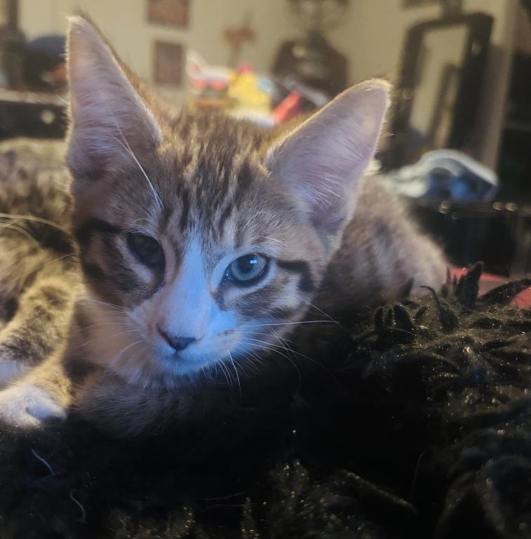 Meet the Magical Markl! He is half Maine coon and half Bengal. He is very sweet and playful. Would not hold still for photos lol. This cute little guy has spots like his mom white paws from his dad. Message me if interested in this cute guy!
