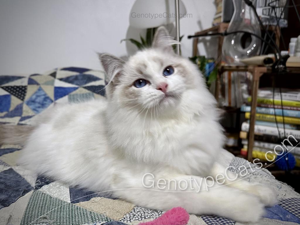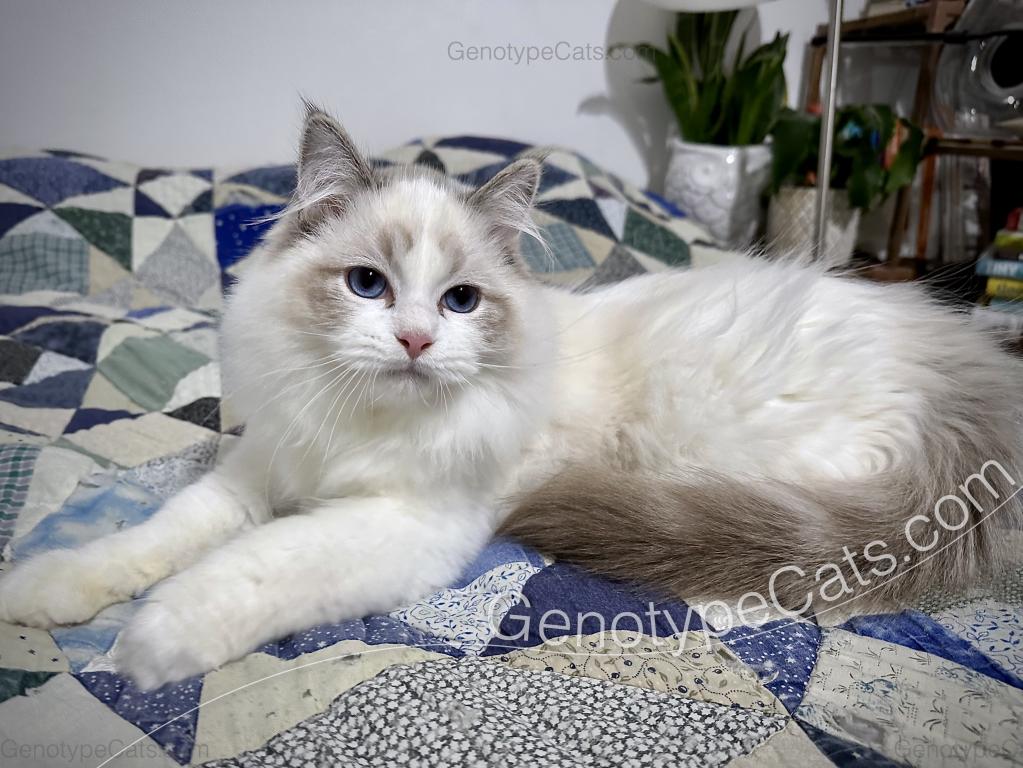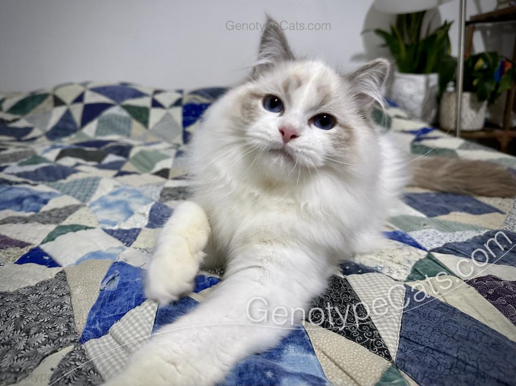 Dean is a big kitten... fluffy and loving too! He does have white in the saddle area on his back but this just gives his pattern more of a unique appearance!