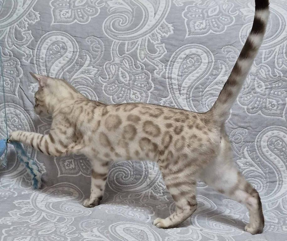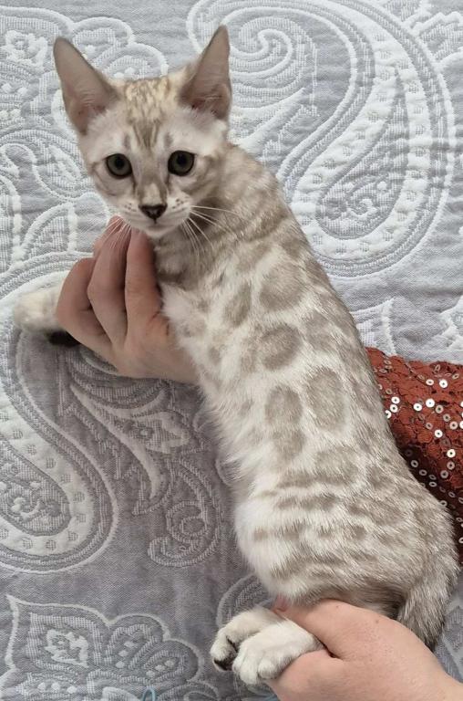 Meet Flora, a gorgeous Bengal kitten with a striking silky coat. This playful, intelligent, and affectionate kitten is ready to become a treasured companion.