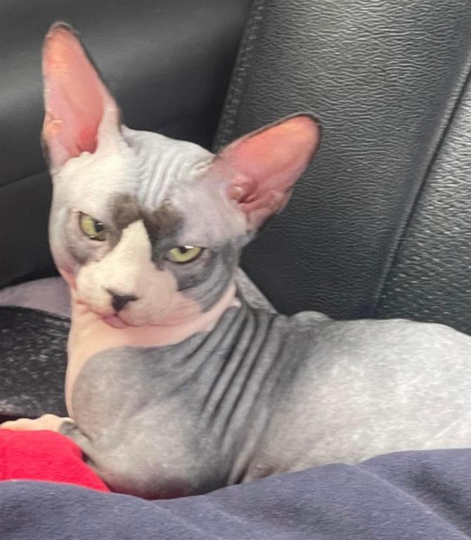 Ben is just a big cuddle bug, loves his human like no other, super sweet he doesn’t mark outside his box, he will need to warm up to you until he trusts fully with new owner, he did it to me as well. Took a week. I’m only rehoming due to family circumstances. He is a Bambino Sphynx standard not dwarf Neutered he would just need a stool test and that’s all after he comes home just incase.