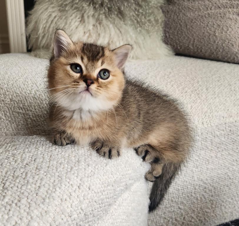 He’s incredibly affectionate, loves being close to his people, and has already started climbing into bed at night for snuggles. Calm, gentle, and full of love, he’s the kind of kitten who will follow you around just to be near you.