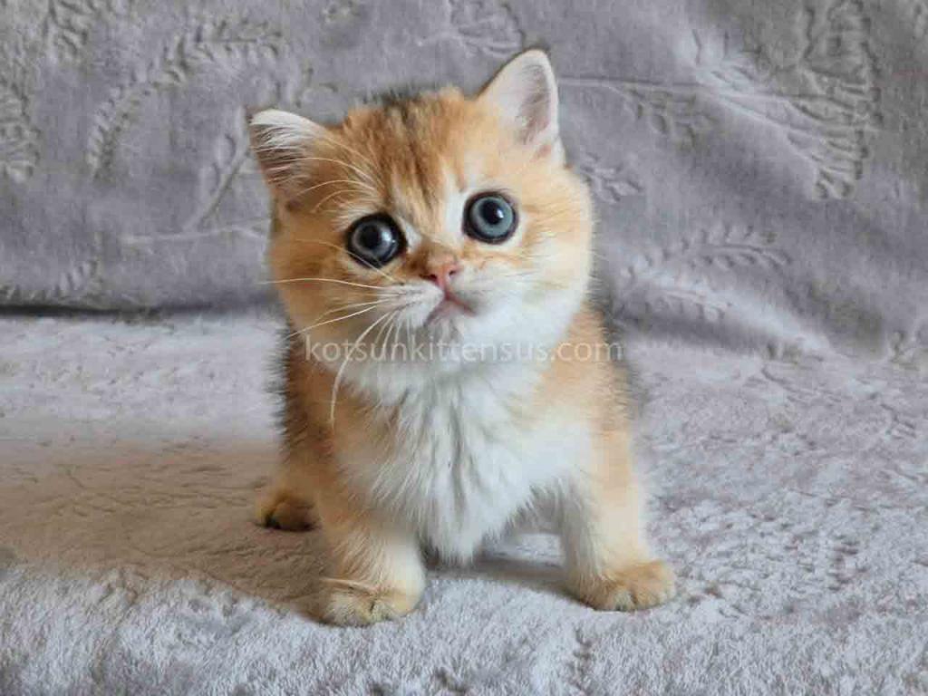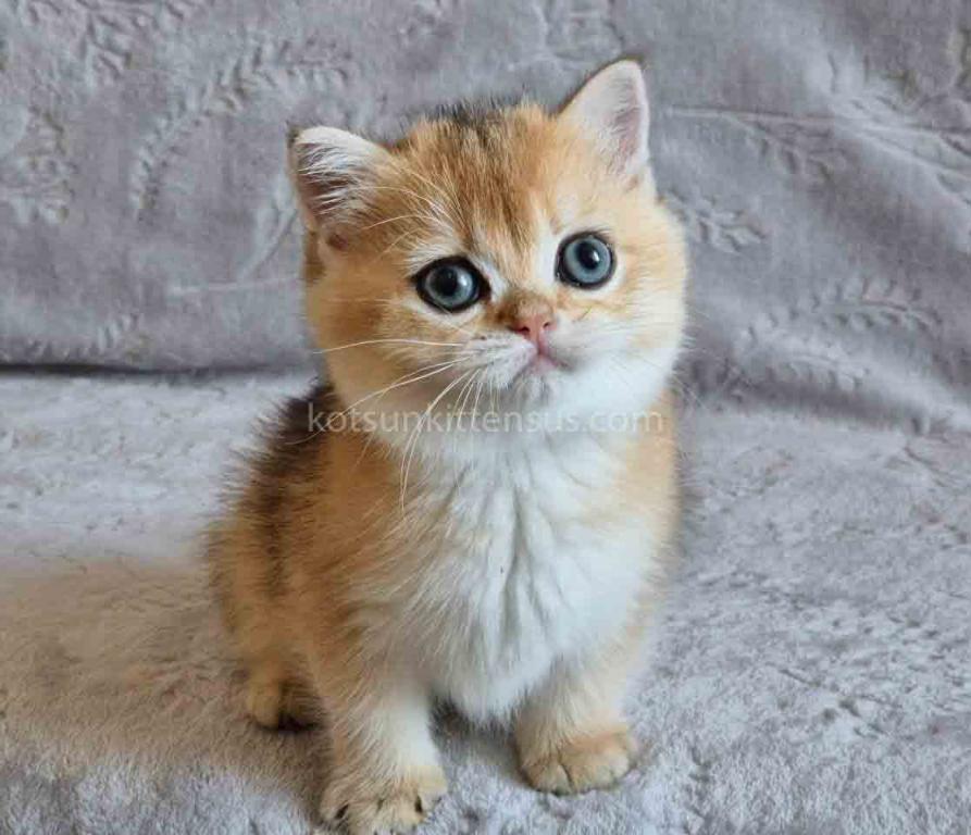 This chunky little sweetheart boasts a perfectly round face, chubby cheeks, and small, rounded ears that give him an irresistible "plushie" look. His soulful eyes are currently a soft blue but will soon transition into a brilliant, emerald green, creating a stunning contrast with his warm golden tones.