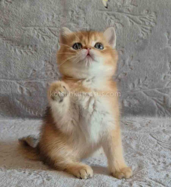 Iracly is a charming and elegant British Shorthair baby boy with a stunning black golden shaded (ny 11) coat. His warm, apricot-toned undercoat is evenly tipped with a soft black shading, giving him a rich, glowing appearance that looks like spun gold.