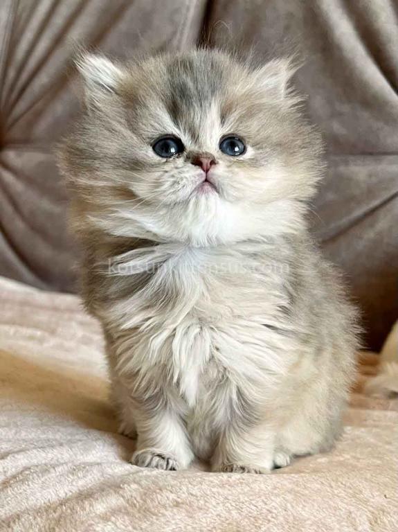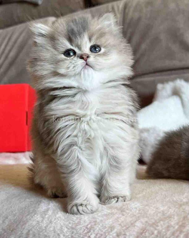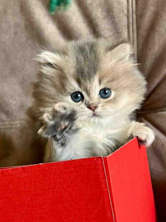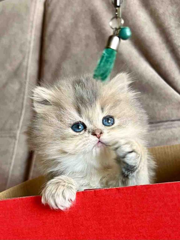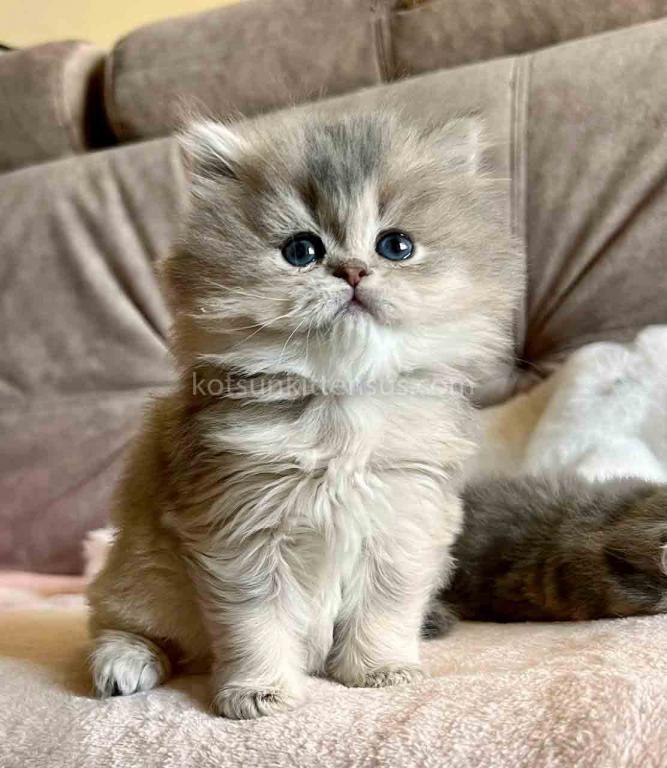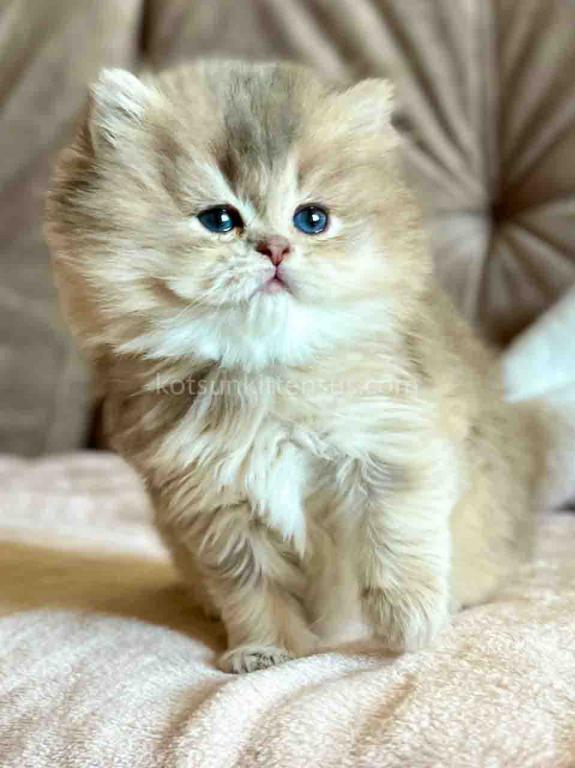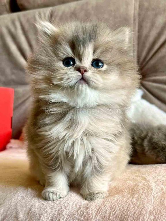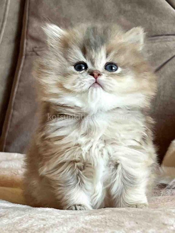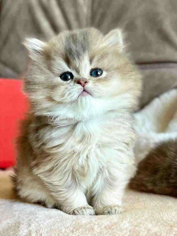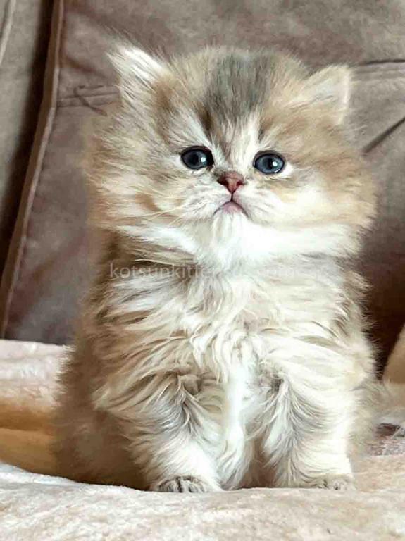 Kivi is an enchanting and majestic British Longhair baby girl with a rare and exquisite blue golden chinchilla (ay 25) coat. Her long, flowing fur is a masterpiece of soft golden tones ticked with delicate blue, creating a dreamy, cloud-like appearance that is incredibly soft to the touch.
