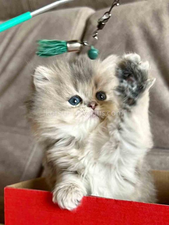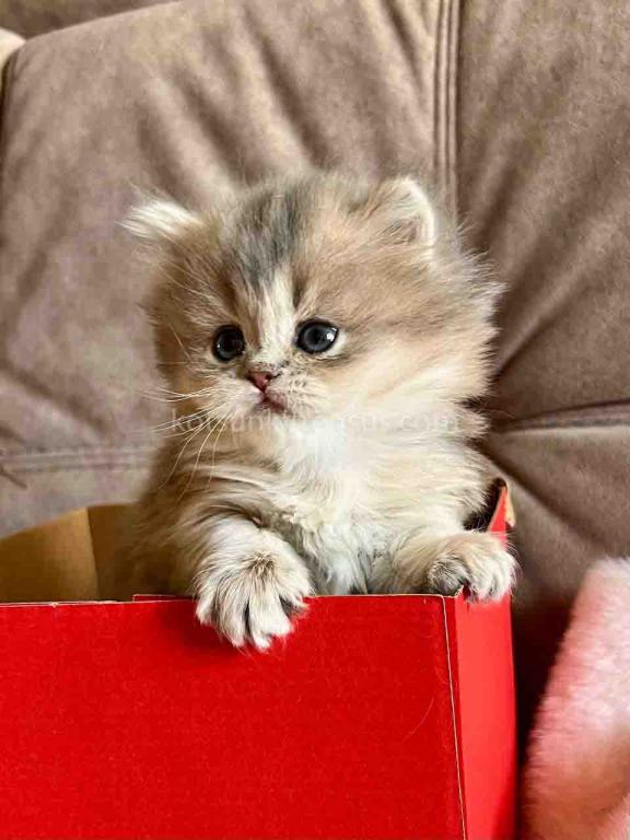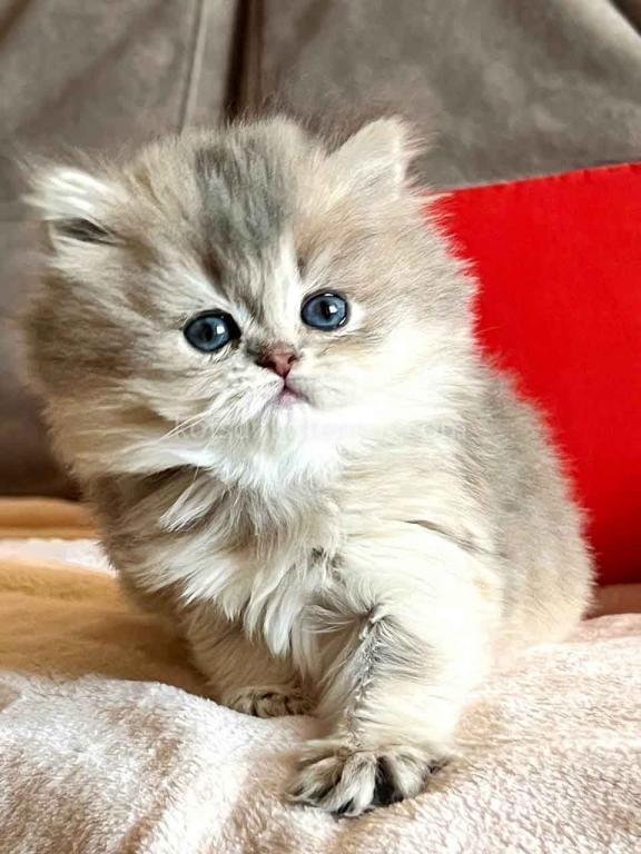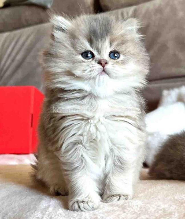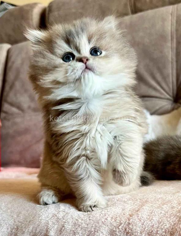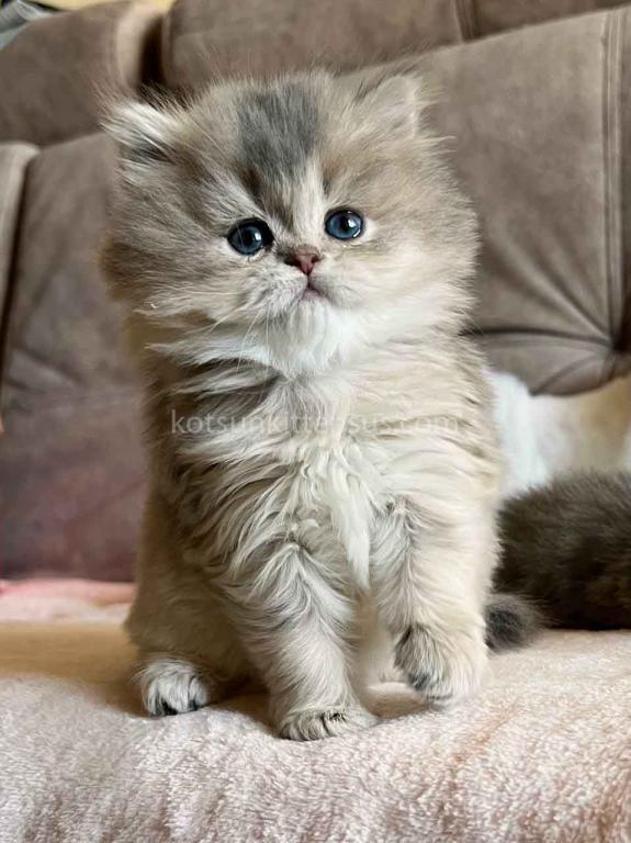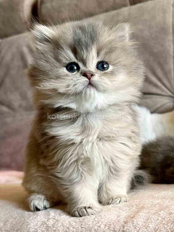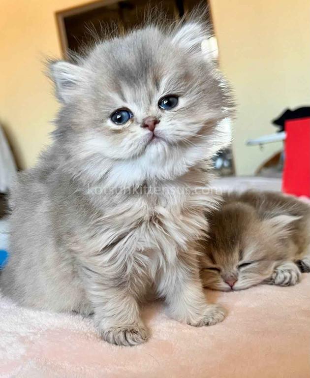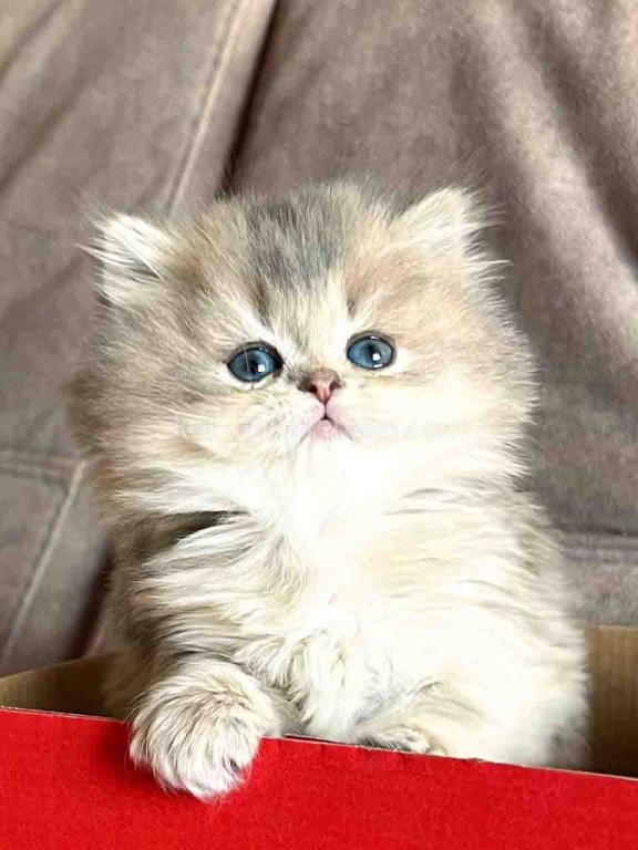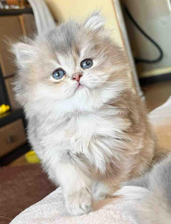 Kivi is an enchanting and majestic British Longhair baby girl with a rare and exquisite blue golden chinchilla (ay 25) coat. Her long, flowing fur is a masterpiece of soft golden tones ticked with delicate blue, creating a dreamy, cloud-like appearance that is incredibly soft to the touch.