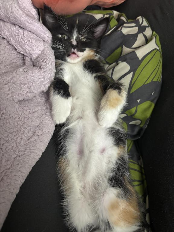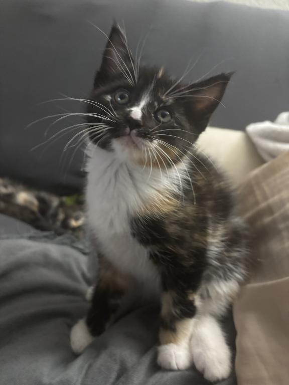 She is a Maine Coon / Ragdoll mix, very vocal, loves snuggle time and may sleep by your side, loves being around people, friendly, and playful - litter trained, eating solid food, raised indoors and well socialized.