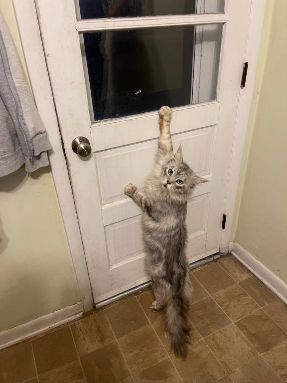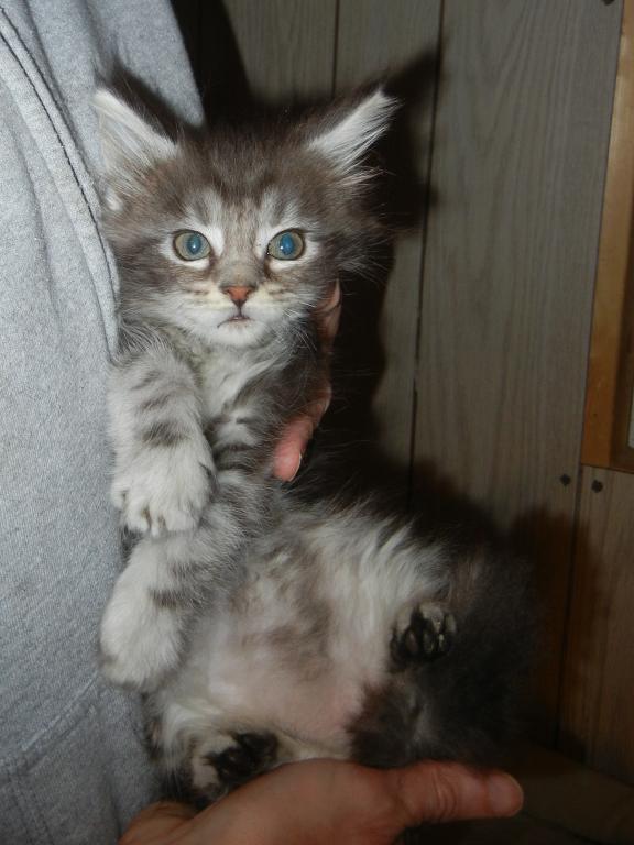 There are three adorable little girls available from this litter! One is a blue smoke and the other two are practically identical black silver tabbies. Both parents are very sweet, friendly cats, and so are their kittens. They are lively and playful but love people as well. Dad Roger is pictured and I will try to get a picture of mom on here shortly. Price on the blue smoke is firm, but I am negotiable on the tabbies as I have more silver tabby girls coming in the next litter.
