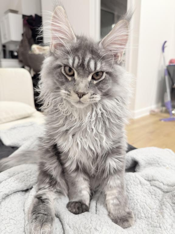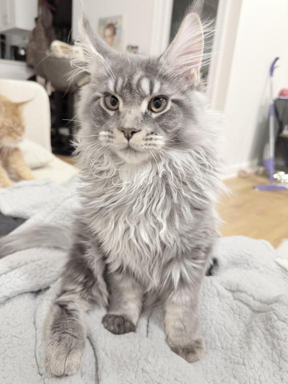 This is Markus. October baby. Maine Coon. Already double the size of his brothers. Built like a lion, plays like a maniac, cuddles like a teddy bear. Main character energy from day one.