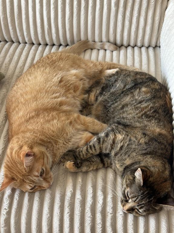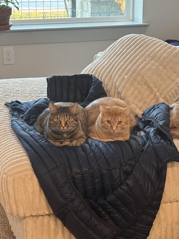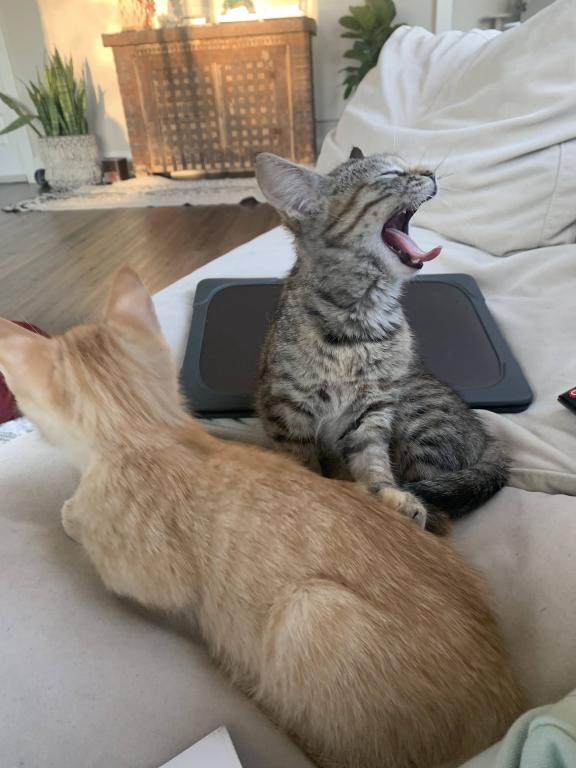We love how calm they are. They only really meow when we're awake and its time for food which is twice a day. They love to cuddle and show affection especially after they eat. They'll stand on their hind legs for treats and eat right out of your fingertips. They are brother and sister so they keep each other company and entertained. They have never broken anything. They love their scratch posts and spring toys. They are the perfect cats. We hate that we have to part ways with them. My wife's health is literally the only reason.
