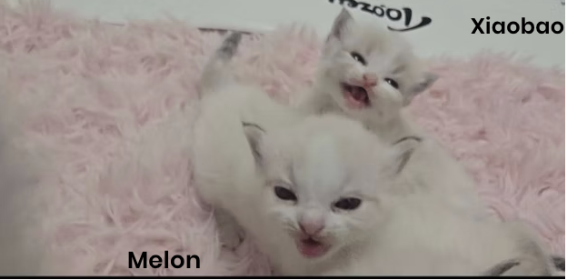 We call her Xiaobao, meaning little baby, because she was smaller compared to her siblings. She had me worried, but with alot of hand care, and nursing from syringe, she has grown to the point I have to hesitate a few seconds to recognize which one is her. At the beginning it was very obvious. Kittens like her who had a lot of human caregiver care, end up being very dependent on humans. Because of the constant early interaction and exposed to human scent and feel. She also has the cutest baby face. It is like looking at a doll. Makes me want to get my camera out everytime I see her face.