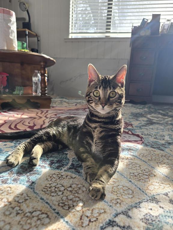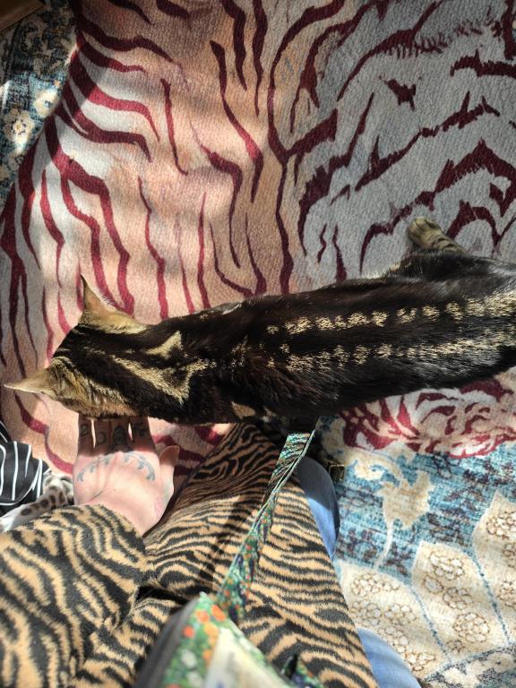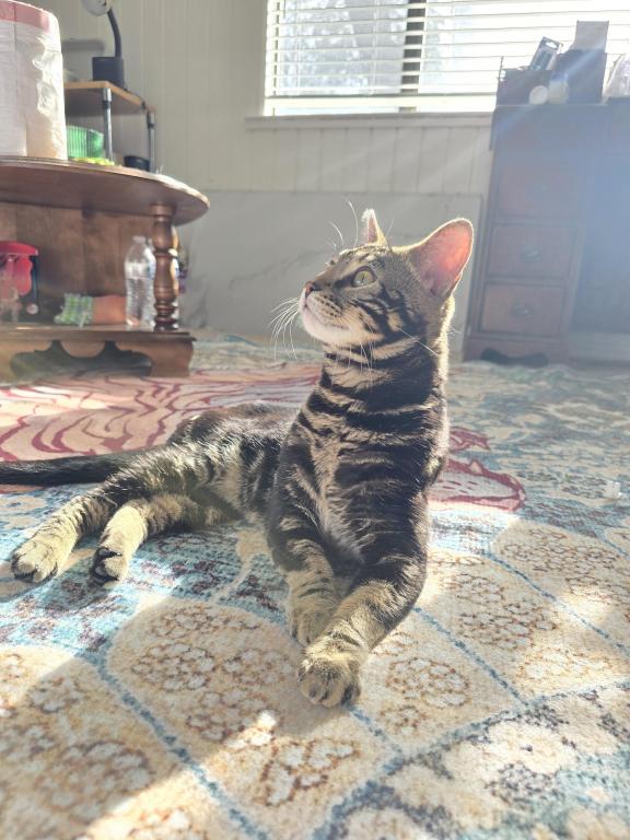 Cupid has a unique marking of an arrow ???? going directly up his back to his neck kind of like Avatar the last Airbender. He has two unique Bengal rosettes on each side of his shoulder with a rare "Toyger" (a type of cat breed) pattern on his entire neck going down. He is an Attachment cat. He would do great with a family or kids as he is nothing but a lover and his motorboat goes off loudly when you pet him. He walks extremely well on a harness. This guy can definitely be an emotional therapy companion. He just follows you around and very involved with whatever your doing.
